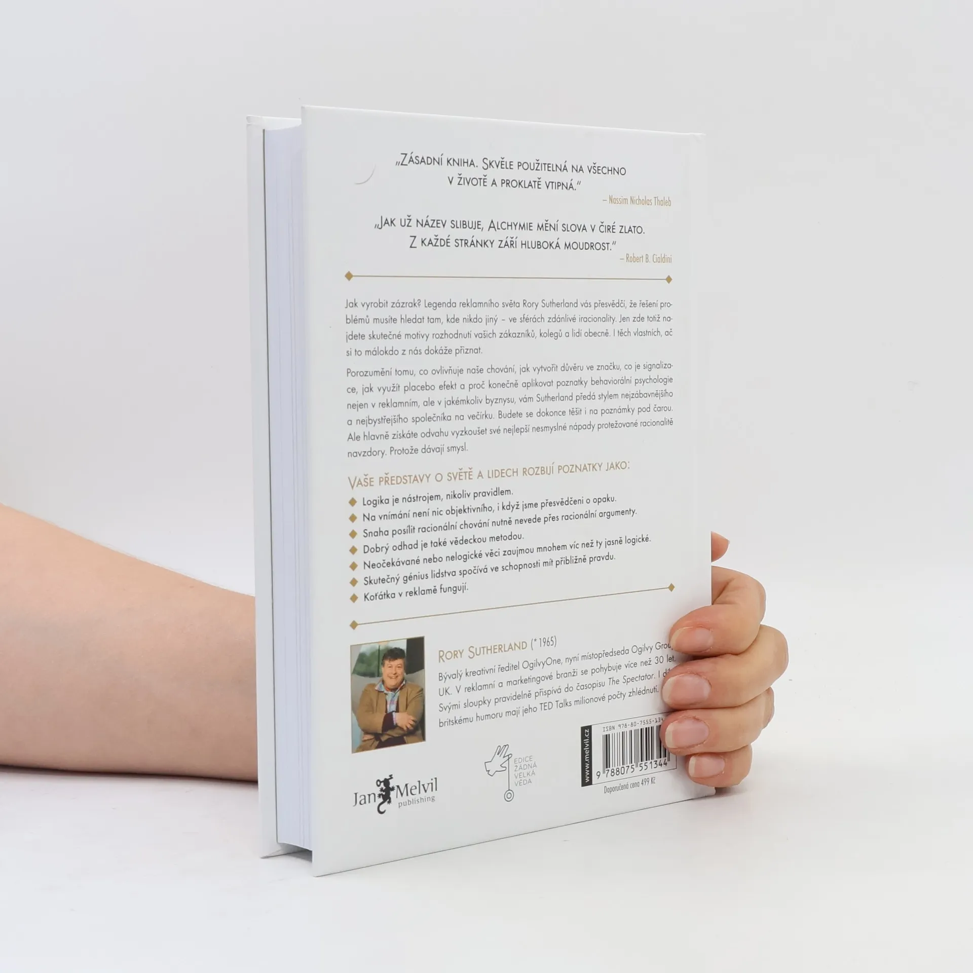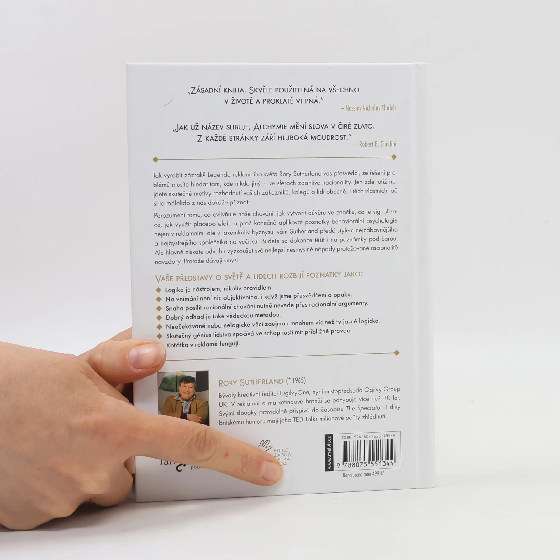 Jak vyrobit zázrak? Legenda reklamního světa Rory Sutherland vás přesvědčí, že řešení problémů musíte hledat tam, kde nikdo jiný – ve sférách zdánlivé iracionality. Jen zde totiž najdete skutečné motivy rozhodnutí vašich zákazníků, kolegů a lidí obecně. I těch vlastních, ač si to málokdo z nás dokáže přiznat. Porozumění tomu, co ovlivňuje naše chování, jak vytvořit důvěru ve značku, co je signalizace, jak využít placebo efekt a proč konečně aplikovat poznatky behaviorální psychologie nejen v reklamním, ale v jakémkoliv byznysu, vám Sutherland předá stylem nejzábavnějšího a nejbystřejšího společníka na večírku. Budete se dokonce těšit i na poznámky pod čarou. Ale hlavně získáte odvahu vyzkoušet své nejlepší nesmyslné nápady protěžované racionalitě navzdory. Protože dávají smysl. Vaše představy o světě a lidech rozbijí poznatky jako: - Logika je nástrojem, nikoliv pravidlem. - Na vnímání není nic objektivního, i když jsme přesvědčeni o opaku. - Snaha posílit racionální chování nutně nevede přes racionální argumenty. - Dobrý odhad je také vědeckou metodou. - Neočekávané nebo nelogické věci zaujmou mnohem víc než ty jasně logické. - Skutečný génius lidstva spočítá ve schopnosti mít přibližně pravdu. - Koťátka v reklamě fungují.