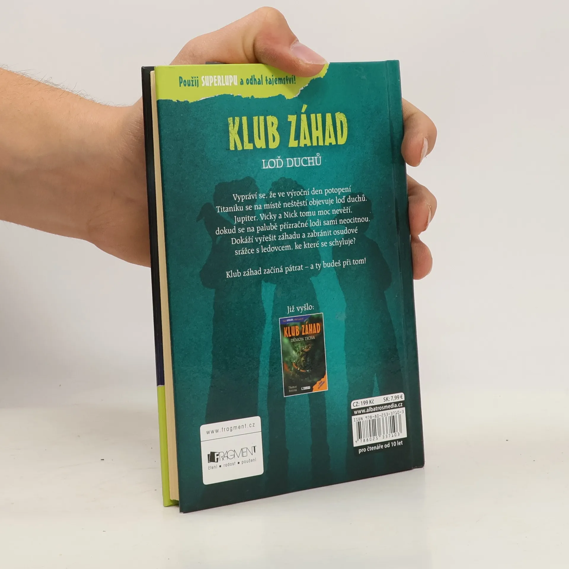 Staň se členem Klubu záhad! Vypráví se, že ve výroční den potopení Titaniku se na místě neštěstí objevuje loď duchů. Jupiter, Vicky a Nick tomu moc nevěří, dokud se na palubě přízračné lodi sami neocitnou. Dokáží vyřešit záhadu a zabránit osudové srážce s ledovcem, ke které se schyluje? Klub záhad začíná pátrat – a ty budeš při tom!