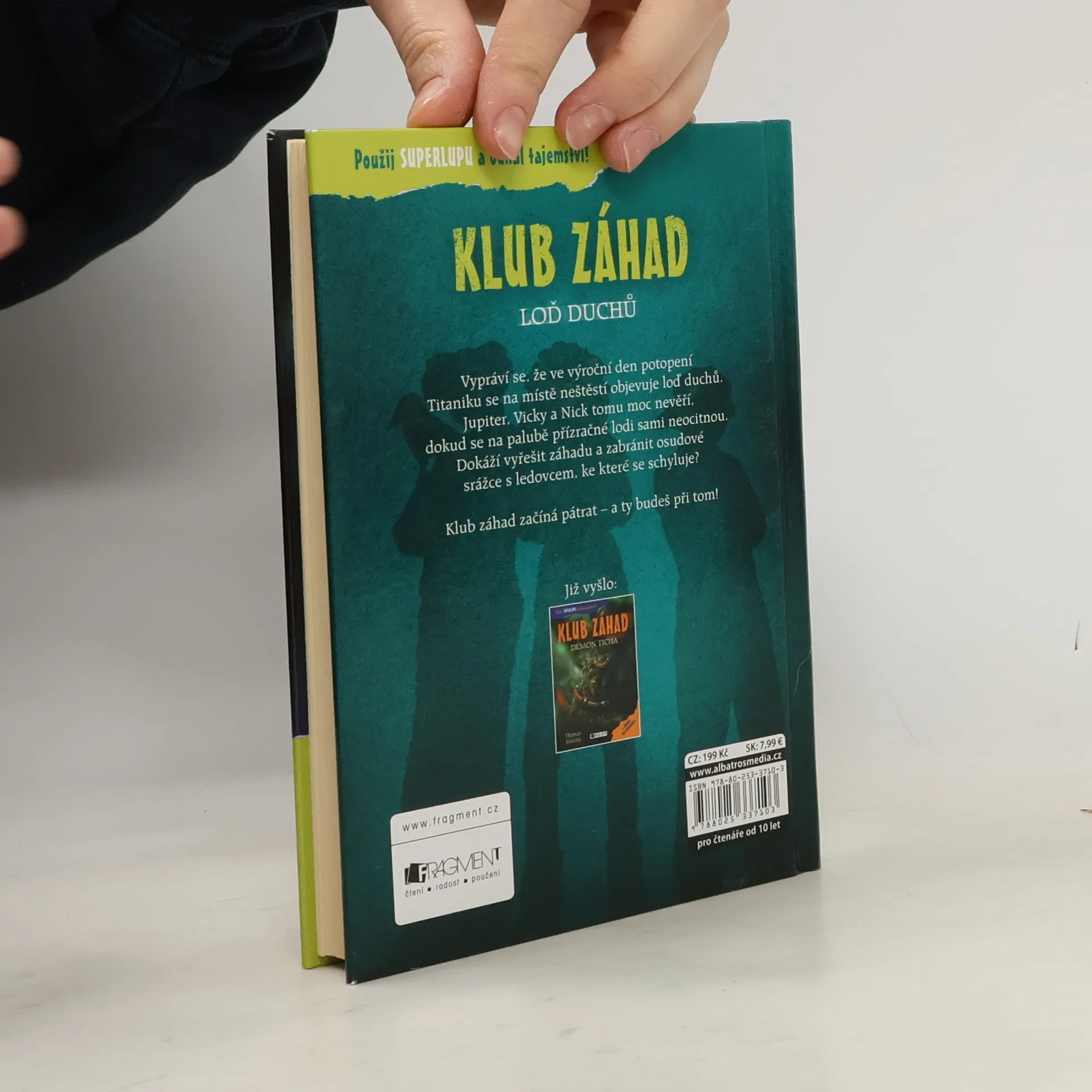 Staň se členem Klubu záhad! Vypráví se, že ve výroční den potopení Titaniku se na místě neštěstí objevuje loď duchů. Jupiter, Vicky a Nick tomu moc nevěří, dokud se na palubě přízračné lodi sami neocitnou. Dokáží vyřešit záhadu a zabránit osudové srážce s ledovcem, ke které se schyluje? Klub záhad začíná pátrat – a ty budeš při tom!