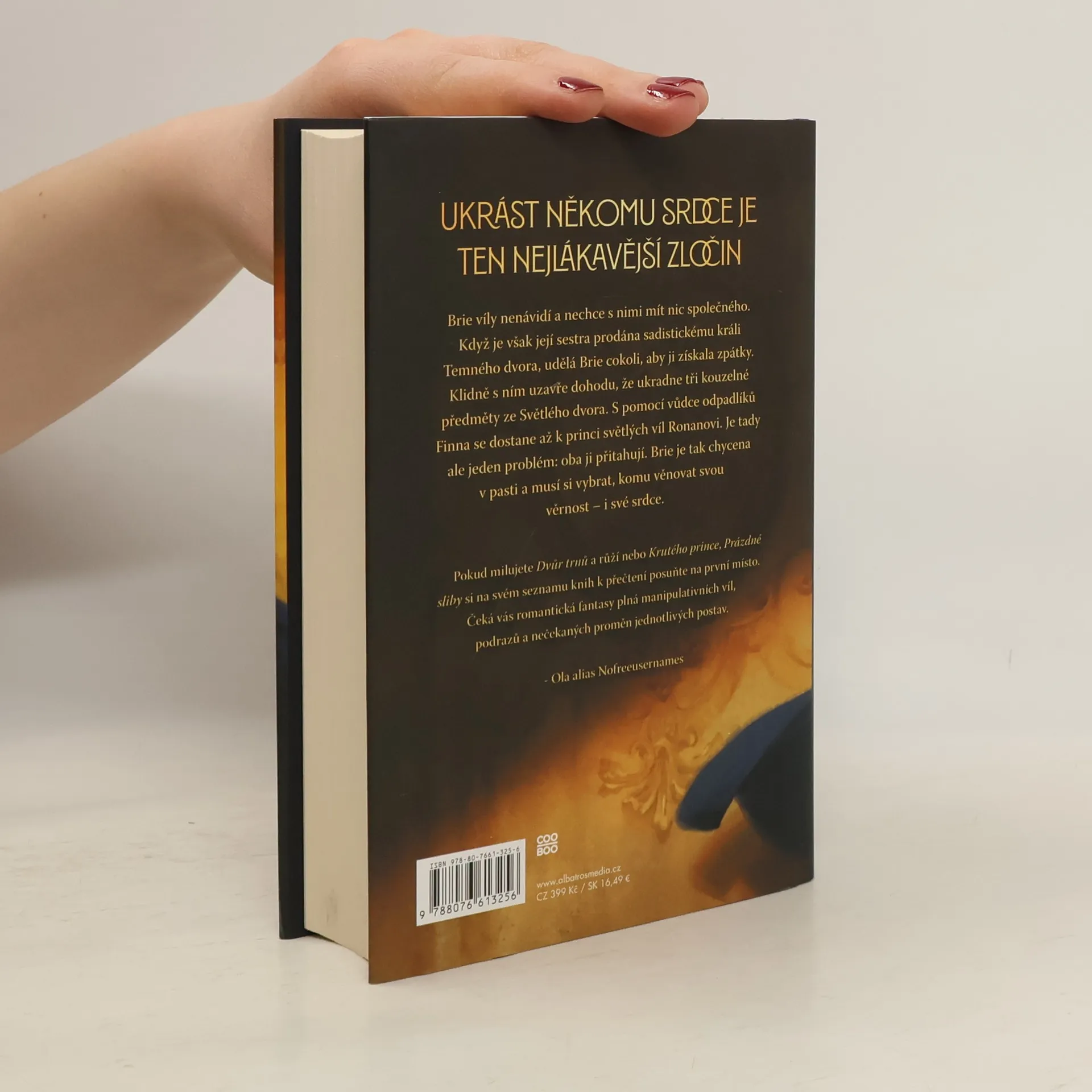 Brie víly nenávidí a nechce s nimi mít nic společného. Když je však její sestra prodána sadistickému králi Temného dvora, udělá Brie cokoli, aby ji získala zpátky. Klidně s ním uzavře dohodu, že ukradne tři kouzelné předměty ze Světlého dvora. S pomocí vůdce odpadlíků Finna se dostane až k princi světlých víl Ronanovi. Je tady ale jeden problém: oba ji přitahují. Brie je tak chycena v pasti a musí si vybrat, komu věnovat svou věrnost – i své srdce.