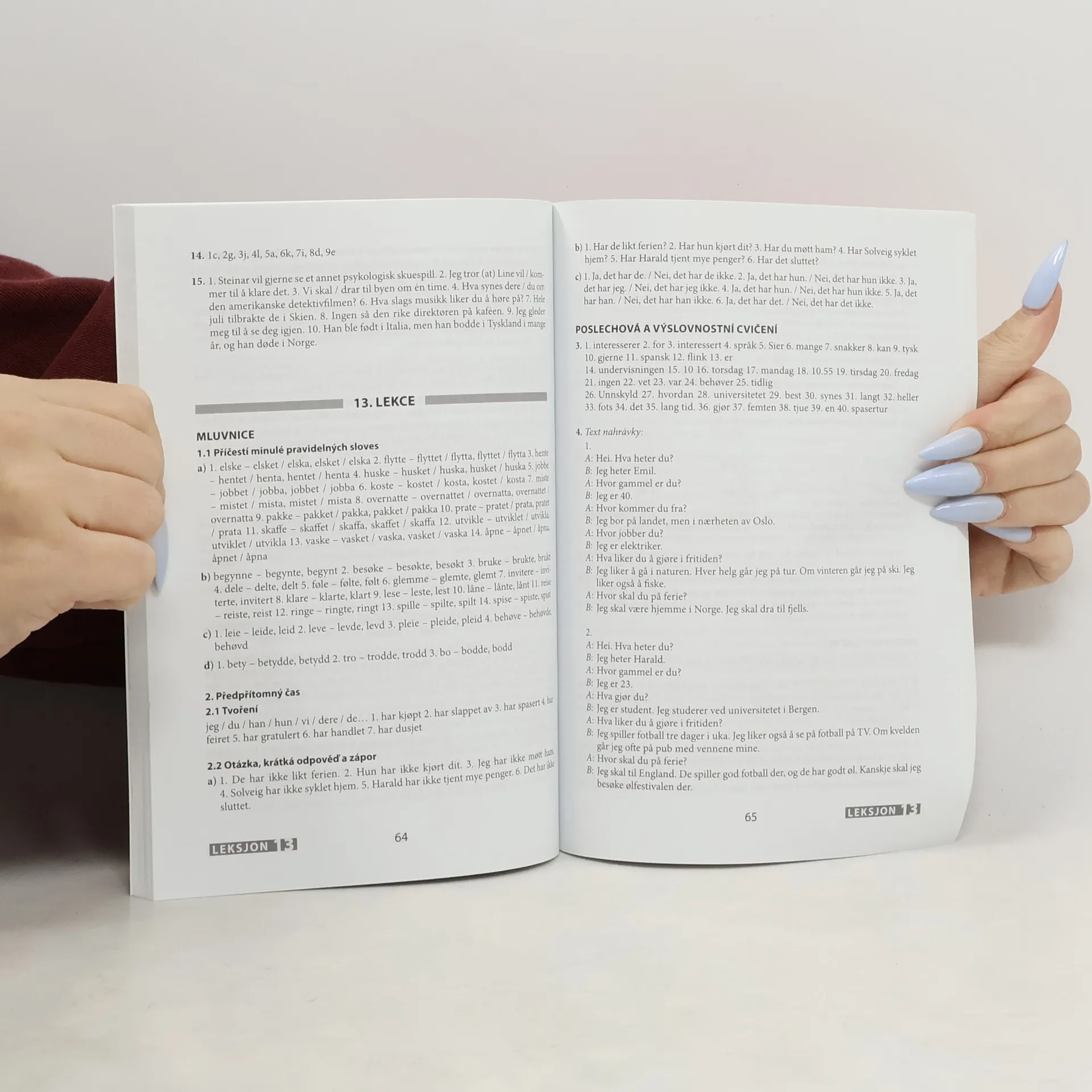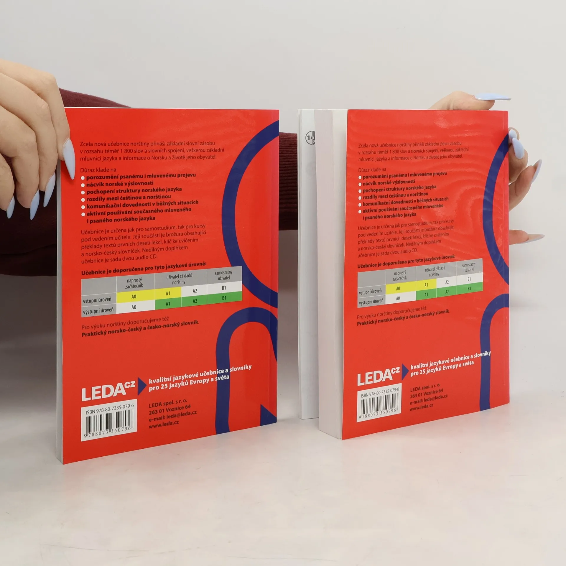 Základní učebnice norštiny určená všem, kteří se chtějí naučit norsky (bokmål) především samostudiem, ale může sloužit i pro jazykové kursy. V jednotlivých lekcích učebnice je zařazen úvodní článek, slovíčka, oddíl frází a předložkových vazeb, reálie, oddíl mluvnice, cvičení na výslovnost, poslechová cvičení a velké množství cvičení na mluvnické jevy a slovní zásobu. Některé lekce uzavírají dodatkové texty, při jejichž četbě si uživatel... Titul tvoří: učebnice (408 str.), klíč (136 str.), 2 audio CD.