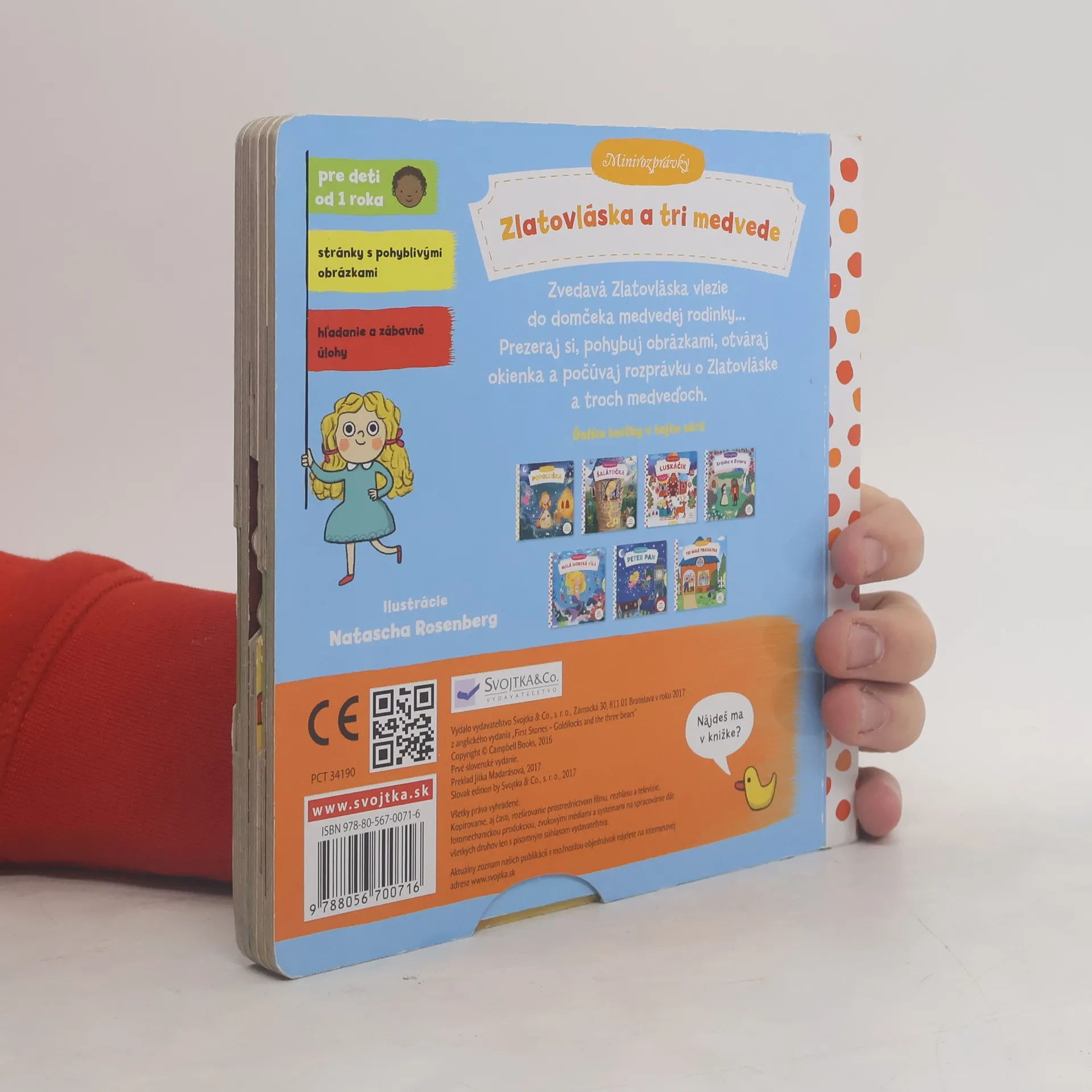 Táto veršovaná minirozprávka je určená deťom od jedného roka. Má pevné stránky s pohyblivými prvkami, takže si deti môžu príbeh oživiť a precvičiť si pršteky.
