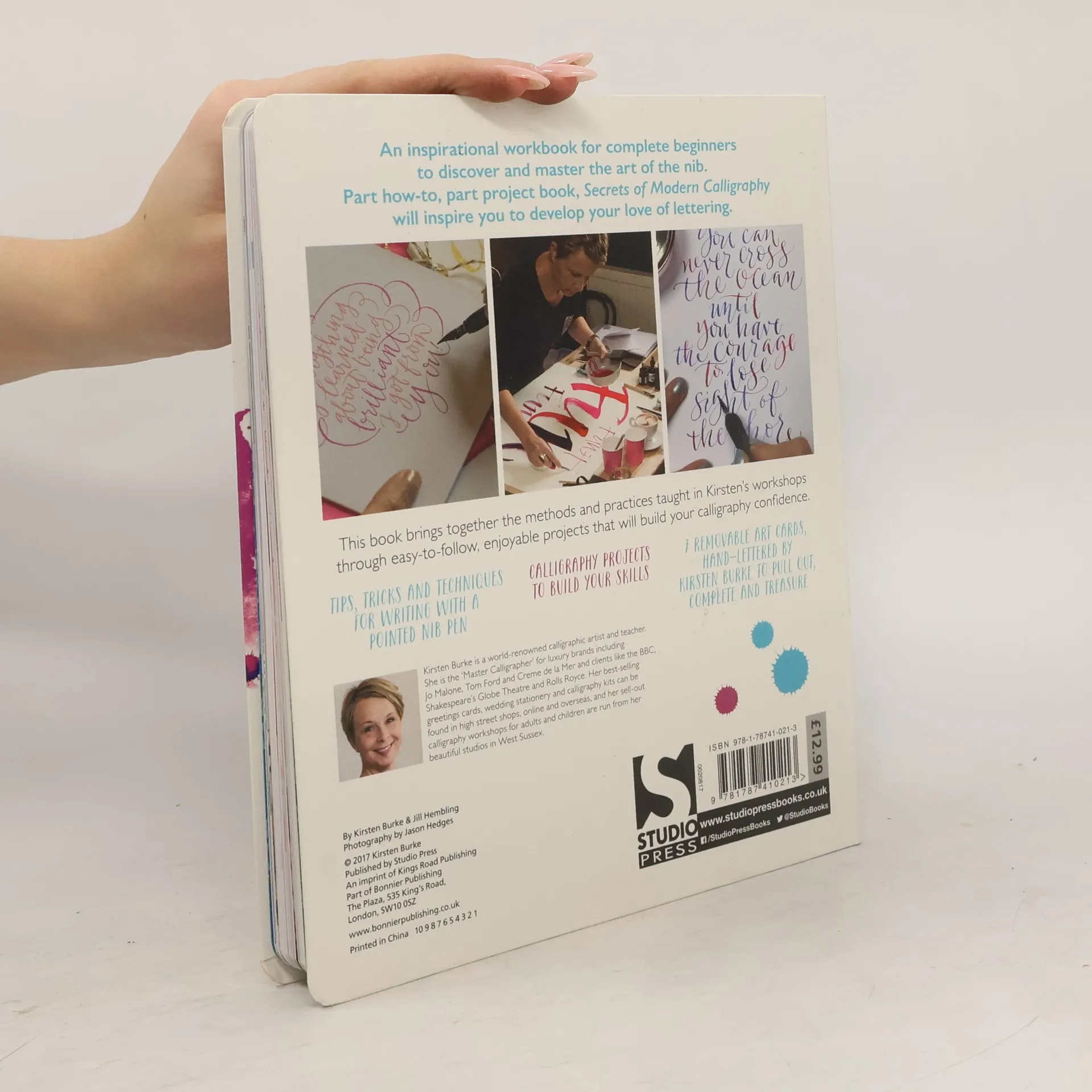 An inspirational workbook for complete beginners to discover and master the art of the nib.Kirsten Burke's Secrets of Modern Calligraphy is a uniquely creative and interactive book for anyone wishing to learn how to create stylish and decorative hand-lettered works of art using modern calligraphy styles.This book brings together the methods and practices taught in Kirsten's workshops through easy-to-follow, enjoyable projects that will build your calligraphy confidence. Includes:Tips, tricks and techniques for writing with a pointed nib pen; Calligraphy projects to build your skills; Blank pages for practise; 7 removable art cards, hand-lettered by Kirsten Burke to pull out, complete and treasure. Part how-to, part project book, Secrets of Modern Calligraphy will inspire you to develop your love of lettering.