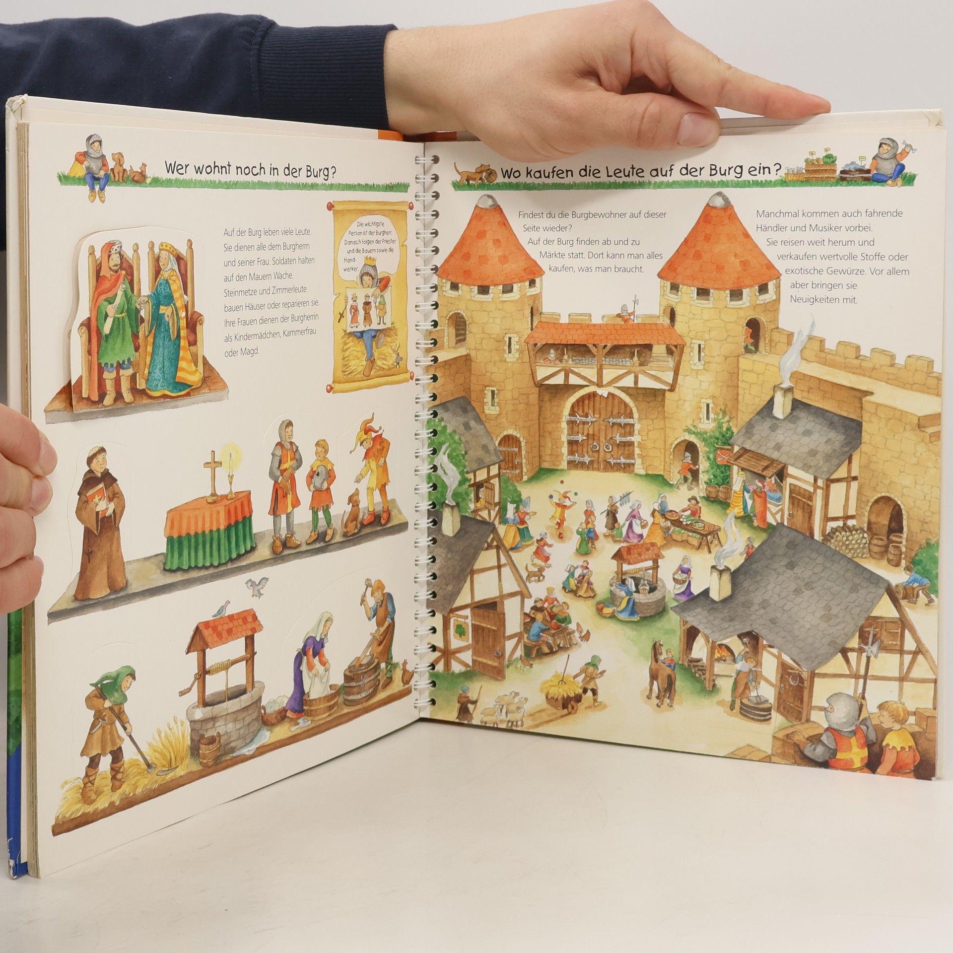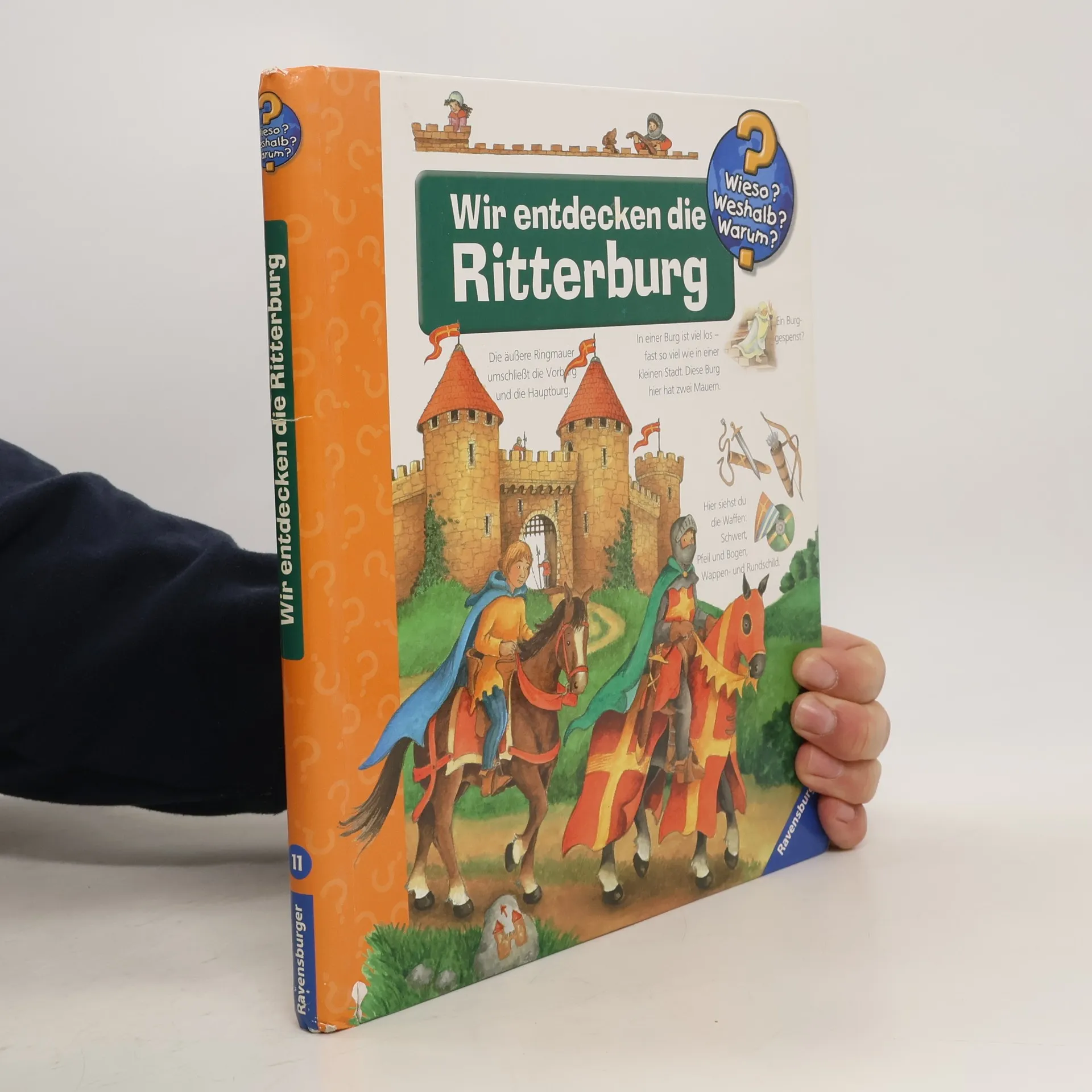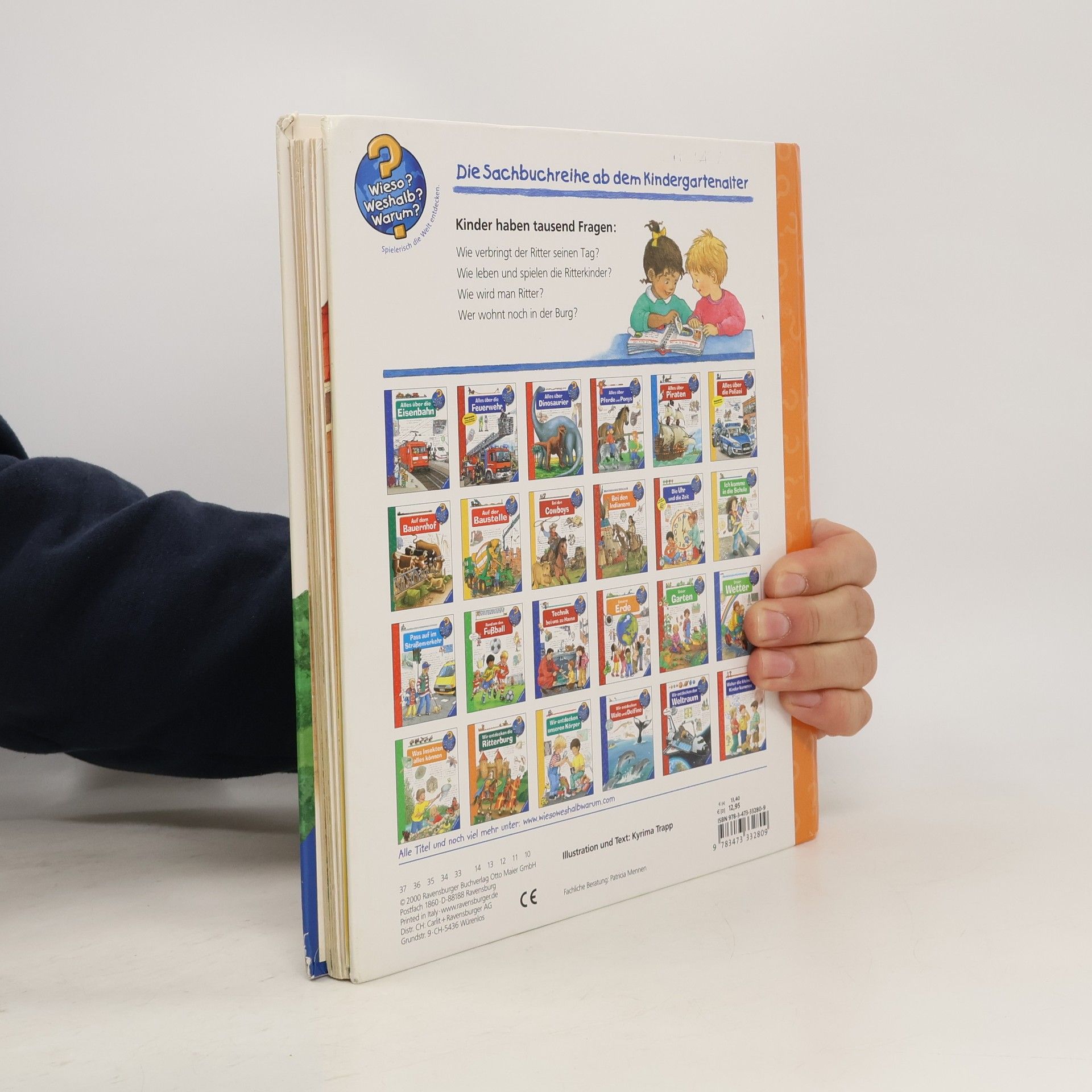 Willkommen auf der Ritterburg! Von der Spitze des höchsten Turms bis zum Verlies gibt es hier jede Menge zu entdecken: Wer lebte auf der Burg? Wie trainierten Knappe und Ritter Reiten und Schwertkampf? Was spielten Kinder im Mittelalter? Mithilfe von Klappen ziehen Kinder dem Ritter seine Rüstung an, lassen ihm beim Turnier antreten oder verteidigen die Burg gegen eine Belagerung. So wird Geschichte Kindern lebendig vermittelt. Wieso? Weshalb? Warum? Die Sachbuchreihe für Kinder von 4–7 Jahren Jeden Tag entdecken Kinder etwas Neues – da kommen viele Fragen auf. Warum sind die Dinosaurier ausgestorben? Wo ist die Sonne in der Nacht? Wozu brauchen wir das Blut? Die beliebte Sachbuchreihe Wieso? Weshalb? Warum? gibt Kindern Antworten auf Augenhöhe. Dabei werden die unterschiedlichsten Themen aus der Alltags- und Interessenswelt der Kinder altersgerecht und mit viel Liebe zum Detail unter die Lupe genommen. Detailreiche Bilder, verständliche Sachtexte und überraschende Klappen, die Bewegungen oder Abläufe veranschaulichen und hinter die Dinge blicken lassen, ermöglichen Kindern, sich ihre Themen selbst zu erschließen. Der Spaß am eigenhändigen Entdecken, die liebevolle Umsetzung und die qualitativ hochwertige Ausstattung garantieren langanhaltende Freude an jedem einzelnen Buch.