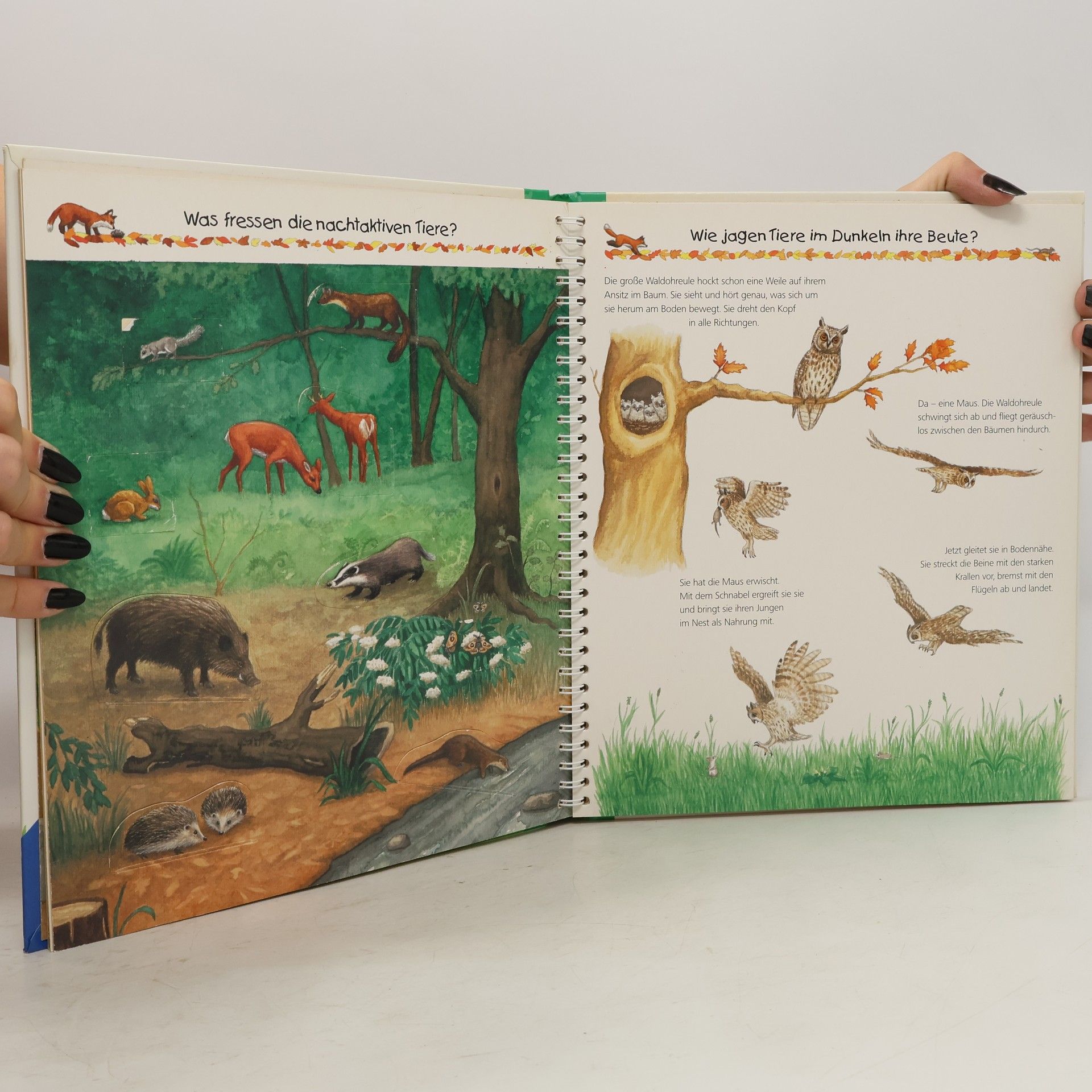 Welche Tiere sind nachts aktiv? Wie jagen sie ihre Beute? Wie orientieren sie sich? Mit den vielen Klappen wird ganz spielerisch viel Information vermittelt.
