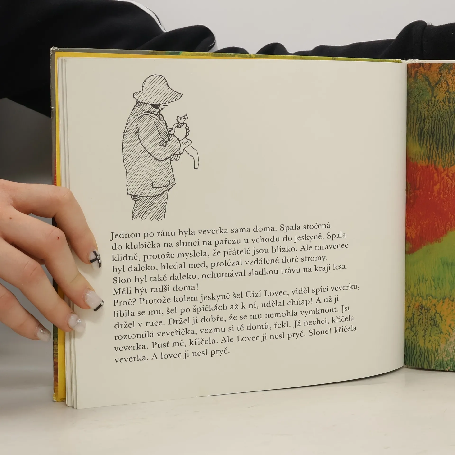 Někdy je docela těžké žít spolu, když jsme každý docela jiný: jeden moc velký, druhý malinkatý a třetí tak akorát. Tak jako slon, mravenec a veverka v krásné a dnes už klasické knížce malířky, ilustrátorky a průkopnice autorských knih pro děti Daisy Mrázkové. Každý z těch tří touží po něčem jiném. Ale když jde o to zachránit život veverce, rozdíly jdou stranou a najednou se může náramně hodit být malinký – jako mravenec – i obrovský – jako slon. Tento srozumitelný a chytrý příběh o drobných potížích rodinného života, velkém přátelství a odvaze v každém z nás skrývá základní otázky lidského života podané s nenapodobitelným jemným humorem a v doprovodu výborných ilustrací. Pro děti od tří let.