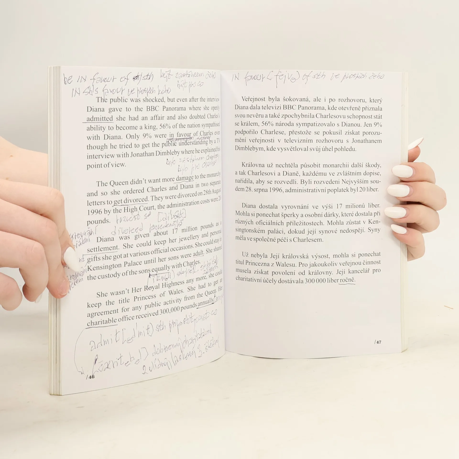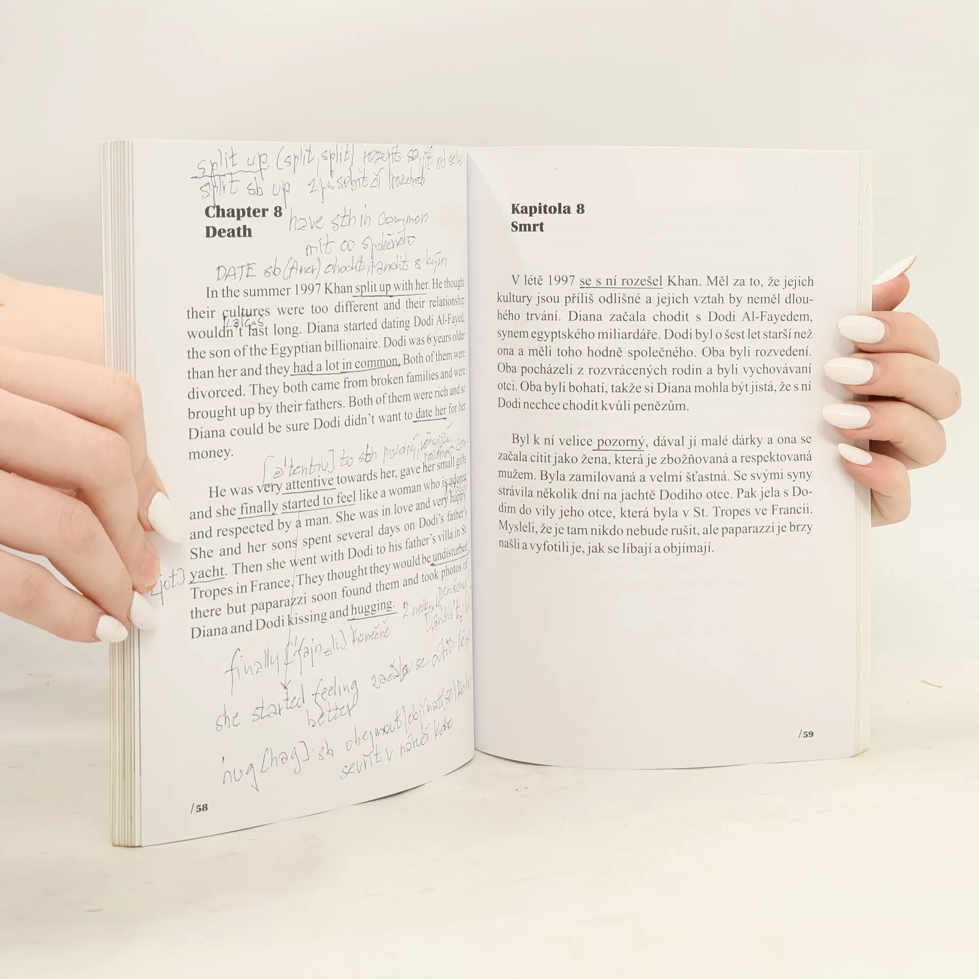 Učte se anglicky s princeznou Dianou! Lady Spencerovou, později princeznu z Walesu znají všichni především jako princeznu Dianu, i když je vlastně tento titul nesprávný. Napsáno toho o ní bylo spousta a nejspíš už se nikdy nedozvíme, jak se některé události v jejím krátkém životě skutečně odehrály. My jsme se pokusili o zachycení nejdůležitějších milníků jejího života, zdrojem nám byly několikrát ověřované informace dostupné na internetu a věříme, že se nám podařilo sestavit objektivní obrázek této charizmatické ženy. Naším hlavním cílem ale bylo napsat zajímavý příběh v angličtině tak, aby si jej mohli přečíst studenti anglického jazyka, i když jsou v tomto jazyce jen mírně pokročilí. Pomoci jim v tom může zrcadlový český překlad textu. Za každou kapitolou naleznete jazykové poznámky a cvičení a na konci knihy je uvedený stručný přehled anglické gramatiky. Doufáme, že se dozvíte z této publikace něco nového jak o princezně Dianě, tak i o jejím mateřském jazyce.