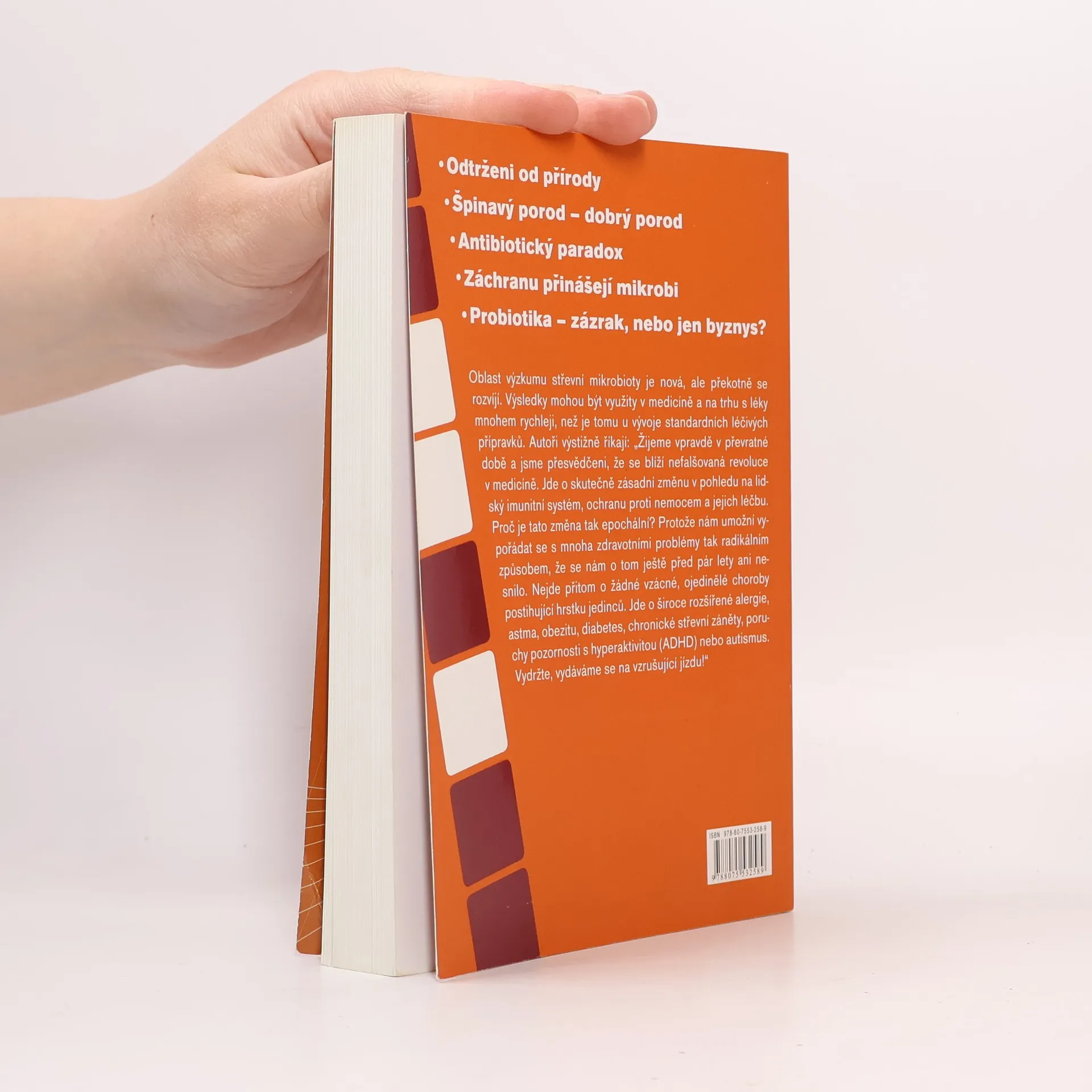 Odtrženi od přírody * Špinavý porod – dobrý porod * Antibiotický paradox * Záchranu přinášejí mikrobi Oblast výzkumu střevní mikrobioty je nová, ale překotně se rozvíjí. Výsledky mohou být využity v medicíně a na trhu s léky mnohem rychleji, než je tomu u vývoje standardních léčivých přípravků. Autoři výstižně říkají: „Žijeme vpravdě v převratné době a jsme přesvědčeni, že se blíží nefalšovaná revoluce v medicíně. Jde o skutečně zásadní změnu v pohledu na lidský imunitní systém, ochranu proti nemocem a jejich léčbu. Proč je tato změna tak epochální? Protože nám umožní vypořádat se s mnoha zdravotními problémy tak radikálním způsobem, že se nám o tom ještě před pár lety ani nesnilo. Nejde přitom o žádné vzácné, ojedinělé choroby postihující hrstku jedinců. Jde o široce rozšířené alergie, astma, obezitu, diabetes, chronické střevní záněty, poruchy pozornosti s hyperaktivitou (ADHD) nebo autismus. Vydržte, vydáváme se na vzrušující jízdu!“