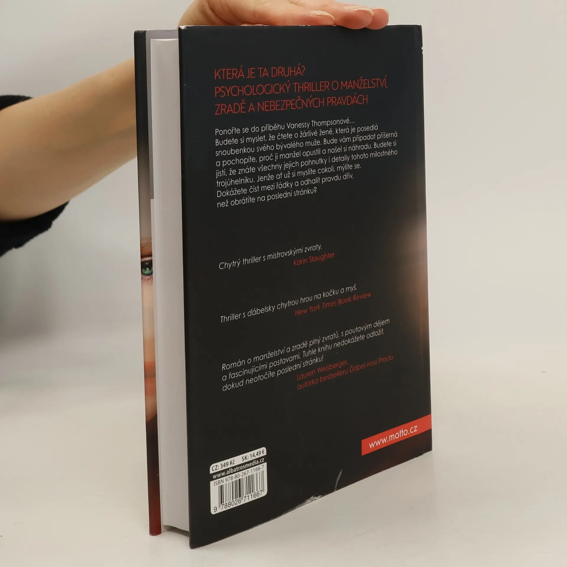 Která je ta druhá? Psychologický thriller o manželství, zradě a nebezpečných pravdách. Ponořte se do příběhu Vanessy Thompsonové… Budete si myslet, že čtete o žárlivé ženě, která je posedlá snoubenkou svého bývalého muže. Bude vám připadat příšerná a pochopíte, proč ji manžel opustil a našel si náhradu. Budete si jistí, že znáte všechny jejich pohnutky i detaily tohoto milostného trojúhelníku. Jenže ať už si myslíte cokoli, mýlíte se. Dokážete číst mezi řádky a odhalit pravdu dřív, než obrátíte na poslední stránku?