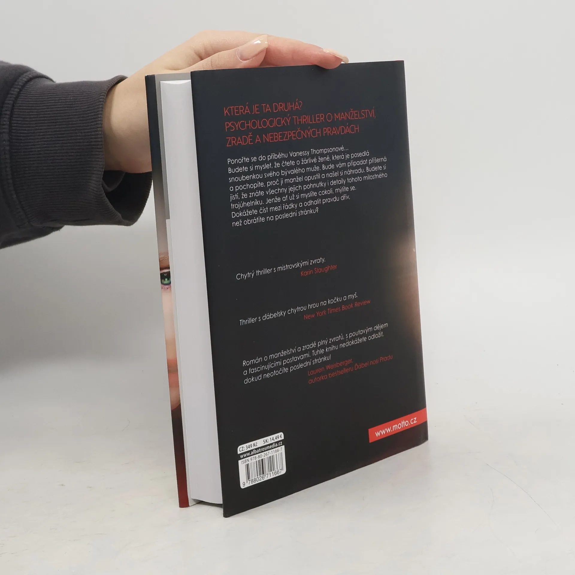 Která je ta druhá? Psychologický thriller o manželství, zradě a nebezpečných pravdách. Ponořte se do příběhu Vanessy Thompsonové… Budete si myslet, že čtete o žárlivé ženě, která je posedlá snoubenkou svého bývalého muže. Bude vám připadat příšerná a pochopíte, proč ji manžel opustil a našel si náhradu. Budete si jistí, že znáte všechny jejich pohnutky i detaily tohoto milostného trojúhelníku. Jenže ať už si myslíte cokoli, mýlíte se. Dokážete číst mezi řádky a odhalit pravdu dřív, než obrátíte na poslední stránku?