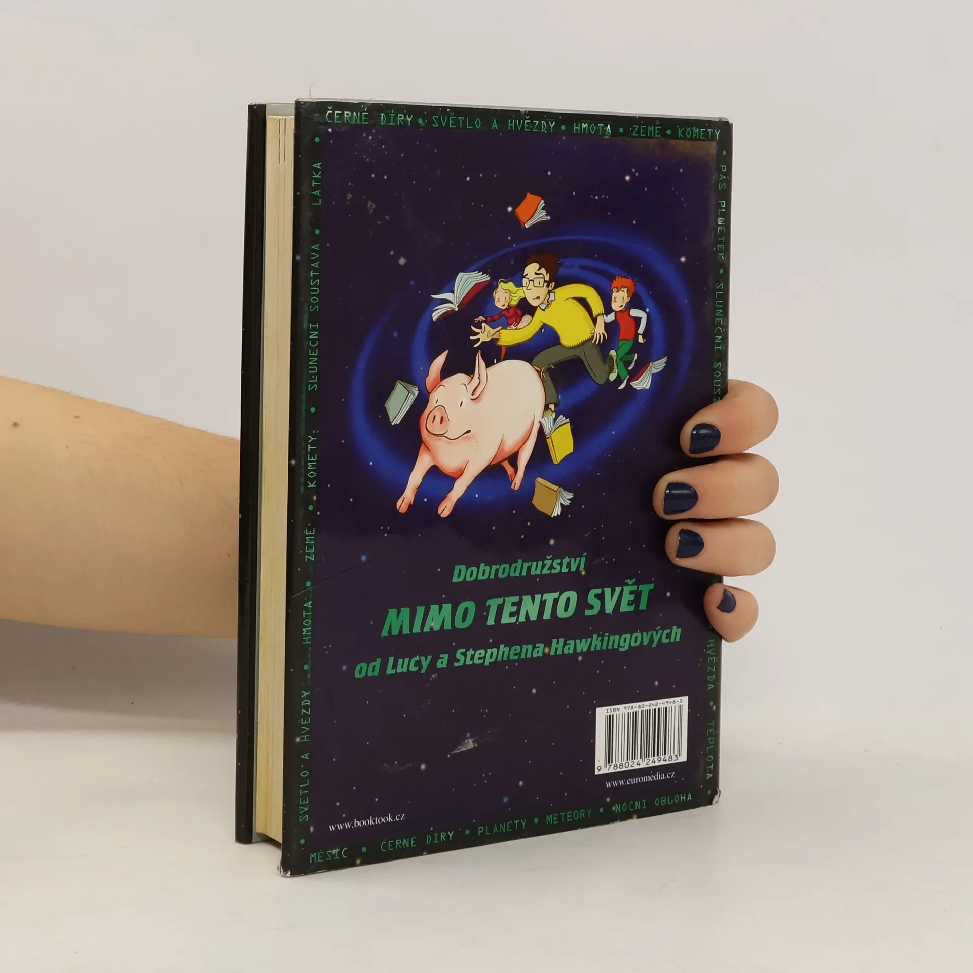 Za vším je útěk Jirkova ochočeného prasátka. Díky němu se Jirka seznámí se svými sousedy - Aničkou a jejím otcem Erikem, který se zabývá vědou. Erik má nejvýkonnější počítač na světě a říká mu Kosmo. Ten dokáže vyslat Jirku a jeho kamarády na jakékoli místo ve vesmíru. Kosma by ovšem rád využil i někdo jiný - a Erik s Jirkou se tím dostanou do obrovského nebezpečí. Ve vesmíru totiž není nic nebezpečnějšího než černá díra... Kniha se čte jedním dechem a spojuje veselé dobrodružství s vědeckými údaji o vesmíru. Najdete v ní nejnovější poznatky o černých dírách od Stephena Hawkinga a také mnoho barevných fotografií přímo z kosmu.