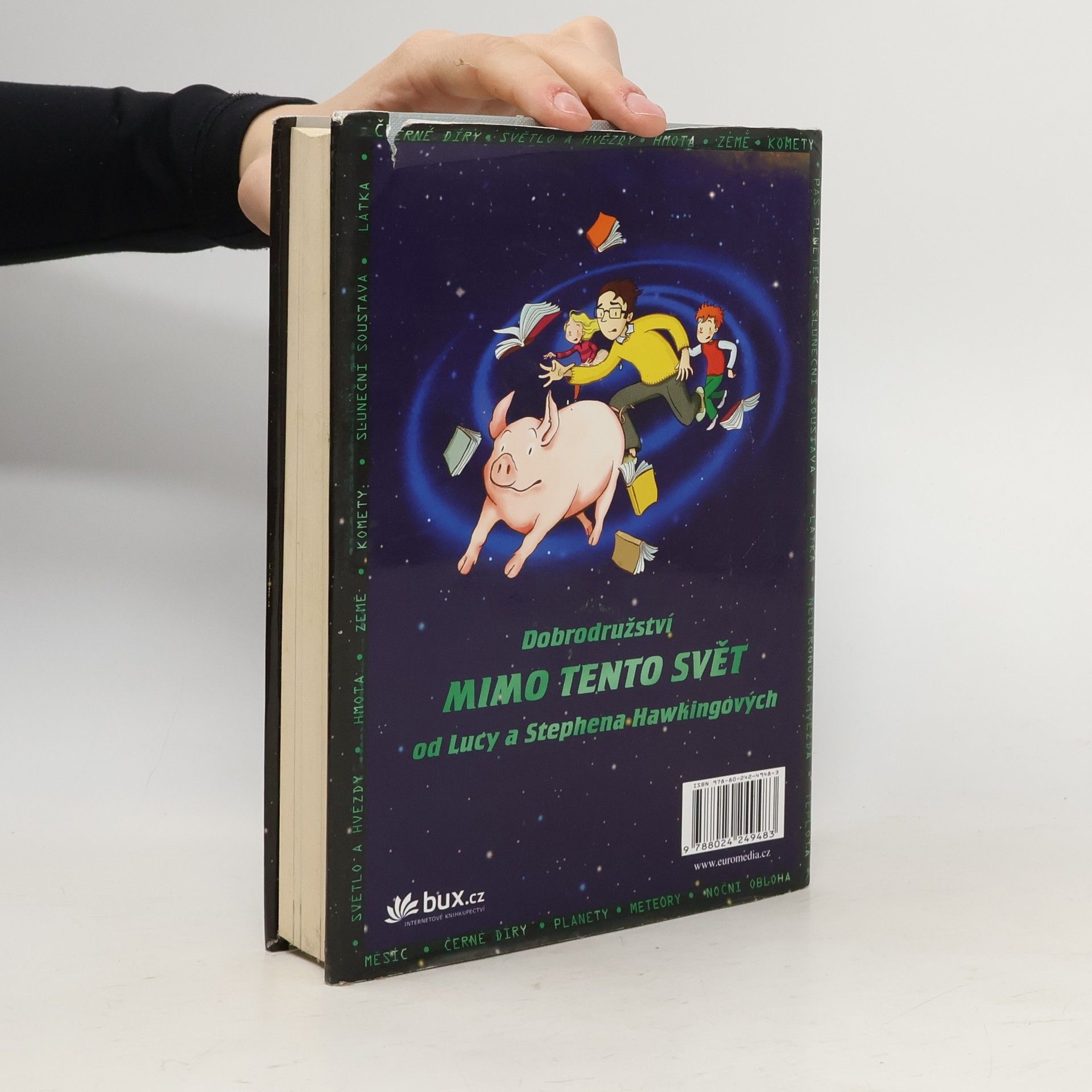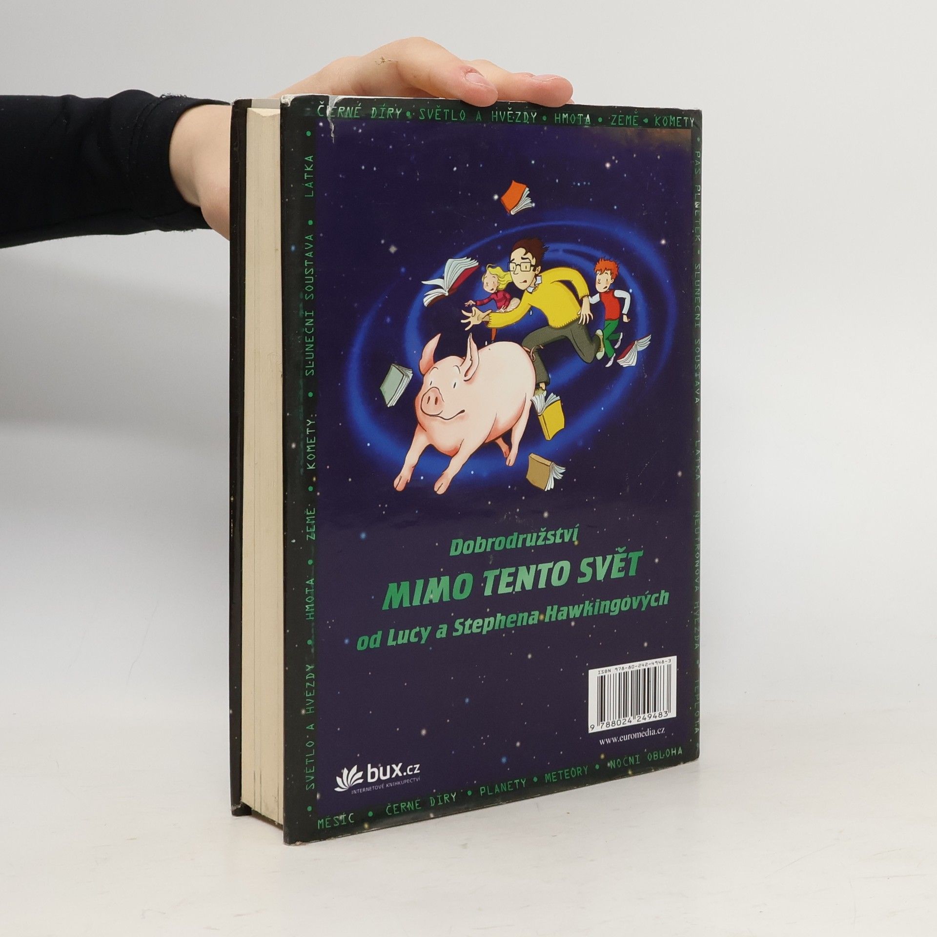 Za vším je útěk Jirkova ochočeného prasátka. Díky němu se Jirka seznámí se svými sousedy - Aničkou a jejím otcem Erikem, který se zabývá vědou. Erik má nejvýkonnější počítač na světě a říká mu Kosmo. Ten dokáže vyslat Jirku a jeho kamarády na jakékoli místo ve vesmíru. Kosma by ovšem rád využil i někdo jiný - a Erik s Jirkou se tím dostanou do obrovského nebezpečí. Ve vesmíru totiž není nic nebezpečnějšího než černá díra... Kniha se čte jedním dechem a spojuje veselé dobrodružství s vědeckými údaji o vesmíru. Najdete v ní nejnovější poznatky o černých dírách od Stephena Hawkinga a také mnoho barevných fotografií přímo z kosmu.