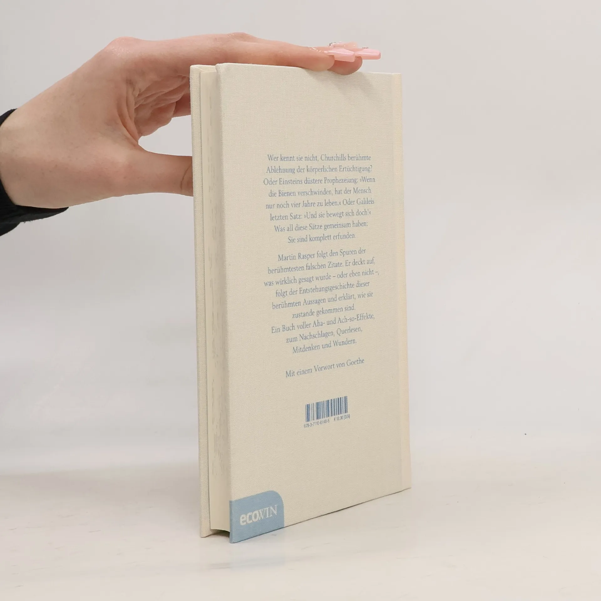 Wer kennt sie nicht, Churchills berühmte Ablehnung der körperlichen Ertüchtigung? Oder Einsteins düstere Prophezeiung: Wenn die Bienen verschwinden, hat der Mensch nur noch vier Jahre zu leben. Oder Galileis letzten Satz: Und sie bewegt sich doch! Was all diese Sätze gemeinsam haben: Sie sind komplett erfunden. Martin Rasper folgt den Spuren der berühmtesten falschen Zitate. Er deckt auf, was wirklich gesagt wurde - oder eben nicht -, folgt der Entstehungsgeschichte dieser berühmten Aussagen und erklärt, wie sie zustande gekommen sind. Ein Buch voller Aha- und Ach-so-Effekte, zum Nachschlagen, Querlesen, Mitdenken und Wundern. Mit einem Vorwort von Goethe