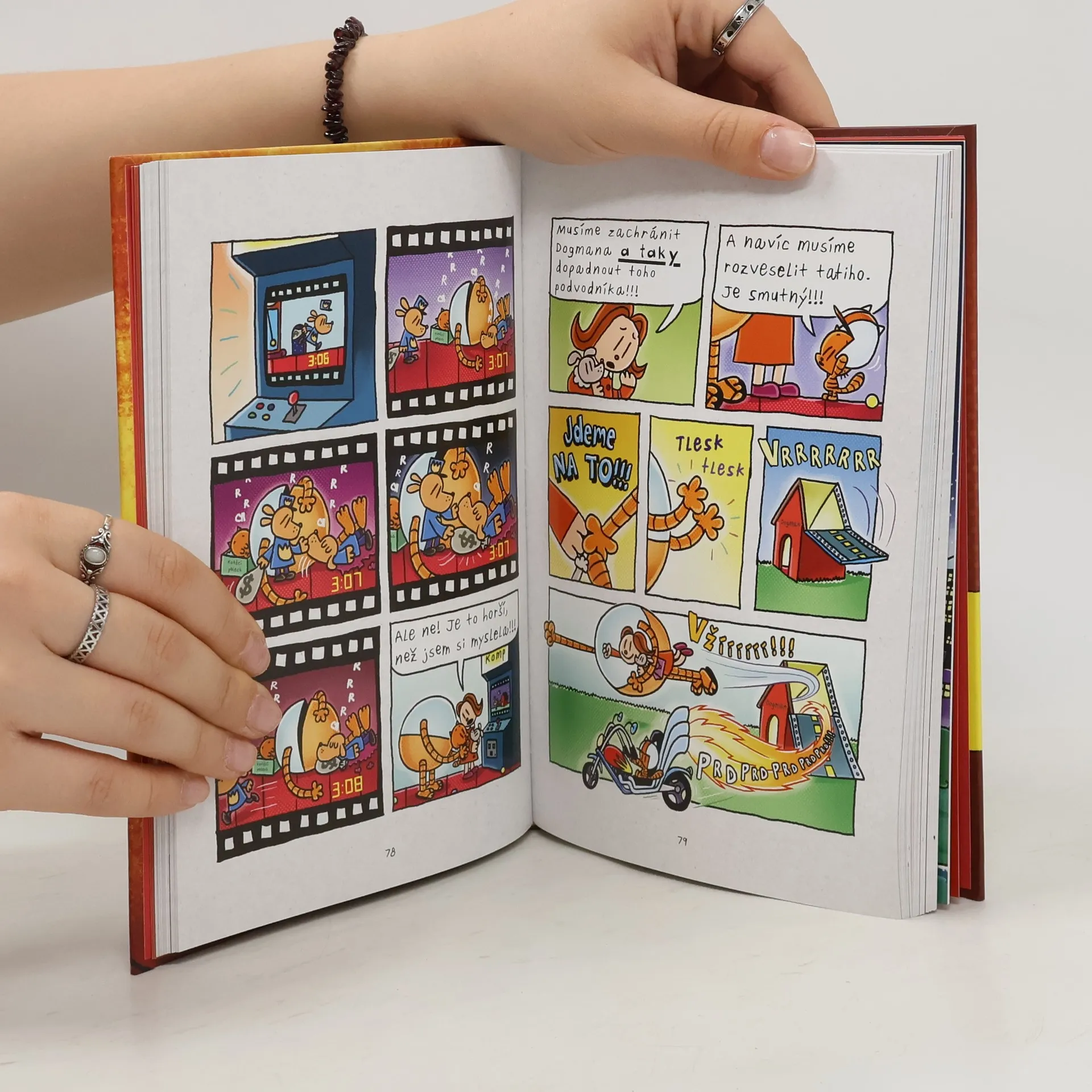 Premiéra velkolepého dogmaního bijáku se blíží! Jenže kdesi v tmách už číhají zloduši – konkrétně BLECHY z předchozího dílu –, kteří chtějí Dogmanovi jeho slávu překazit. Narafičí to tak, že náš hrdina s psí hlavou je obviněn z loupeže a jde kňučet za mříže. Naštěstí má Dogman kámoše, ba dokonce Superkámoše, kteří neváhají a jdou ho z té šlamastyky vysekat. Jak to všechno dopadne? Čtěte další díl světově proslulé série o nejlepším psolicajtovi ve vesmíru!