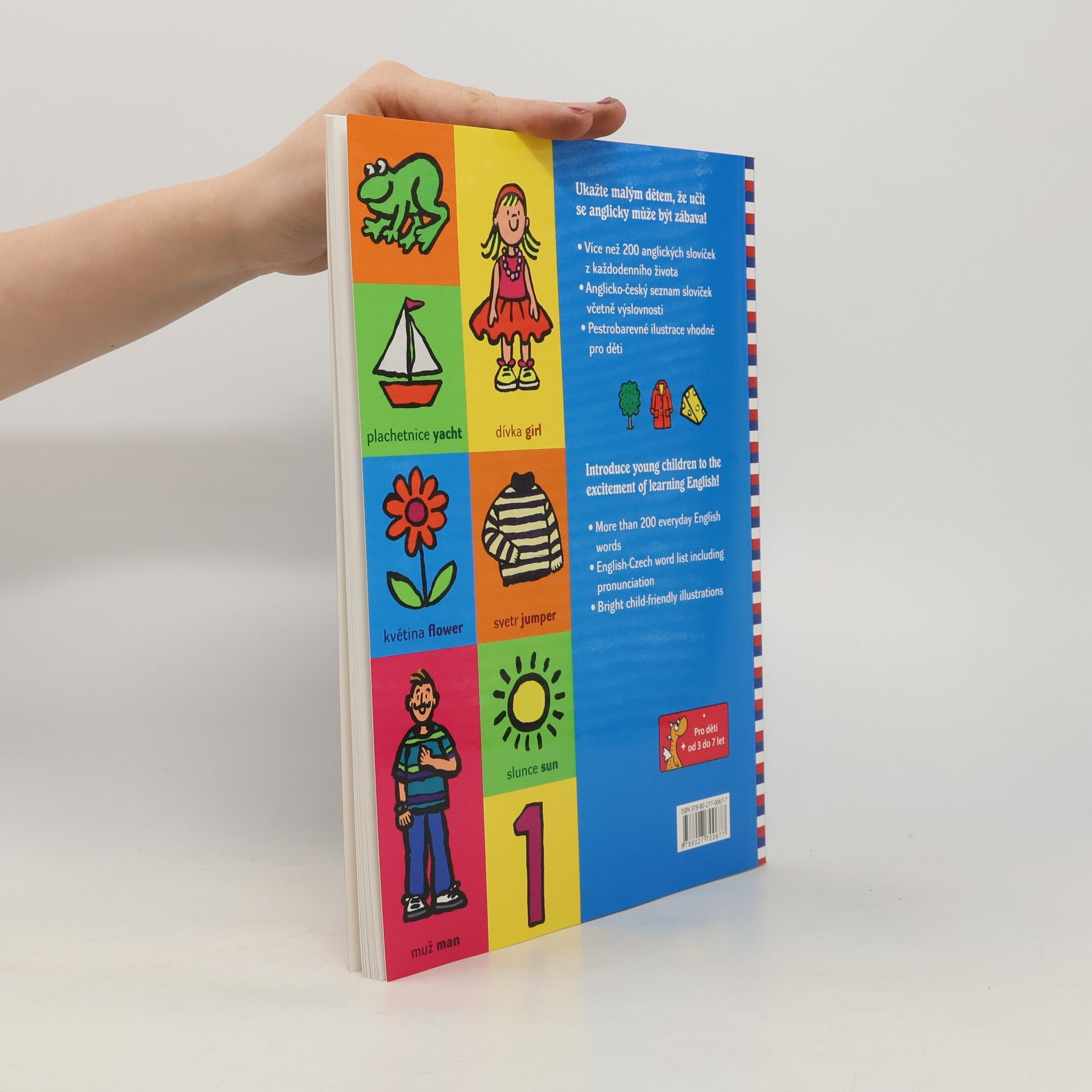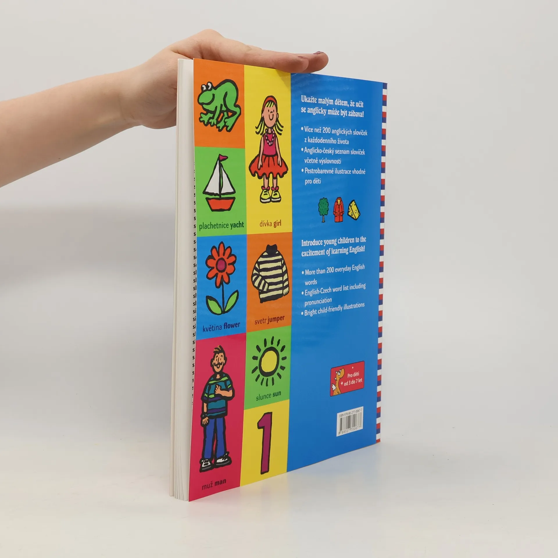 Ukažte malým dětem, že učit se anglicky muže být zábava! Více než 200 anglických slovíček z každodenního života Anglicko-český seznam slovíček včetně výslovnosti Pestrobarevné ilustrace vhodné pro děti