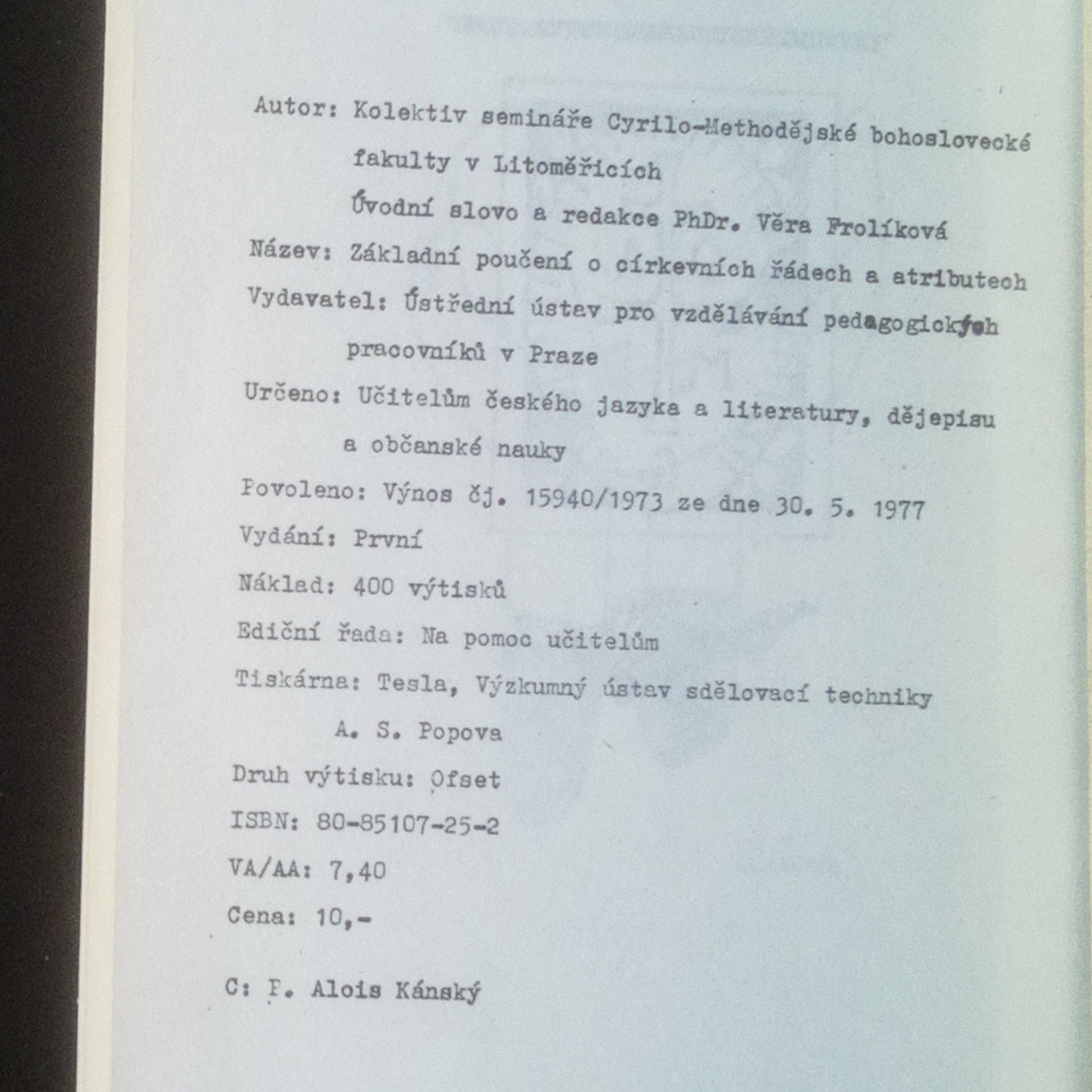 Základní poučení o církevních řádech a atributech, Various authors