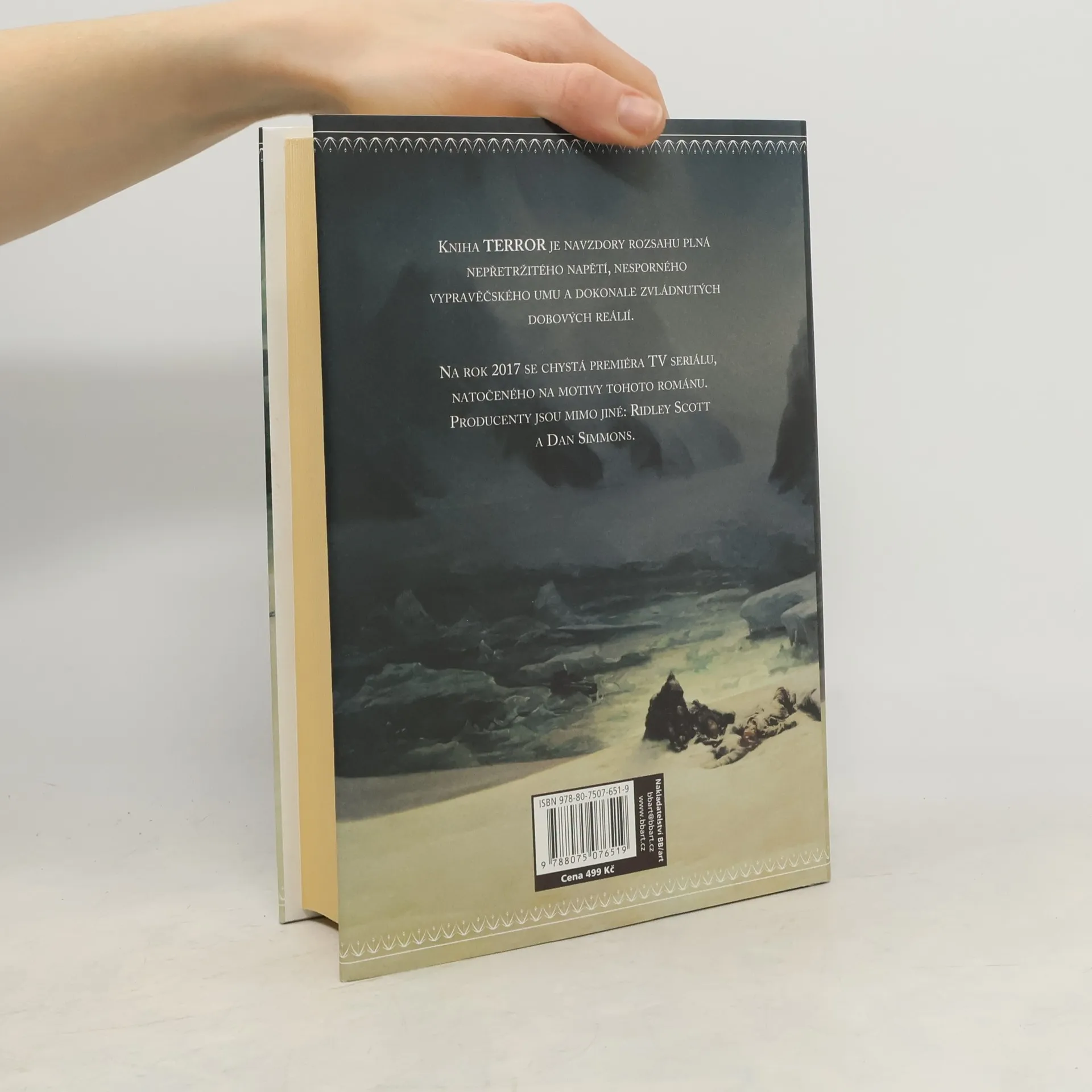 Kniha Dana Simmonse, Terror, je ve všech smyslech toho slova „mrazivý“ horor, vycházející z historických událostí. Simmons jako kulisu svého příběhu použil výpravu sira Franklina, která se roku 1845 vydala hledat tzv. „severozápadní cestu“ a jejíž osud je dodnes zahalen tajemstvím a je předmětem mnoha odborných i laických spekulací. V pestrém kaleidoskopu, proloženém četnými retrospektivními pasážemi, sledujeme osudy námořníků, kteří uvázli v ledové arktické pasti, docházejí jim potraviny, sužují je kurděje i jiné choroby a pronásleduje je tajemný a nelítostný netvor. Výprava se postupně mění v zoufalý boj o přežití. Kniha je navzdory rozsahu plná nepřetržitého napětí, nesporného vypravěčského umu a dokonale zvládnutých dobových reálií.