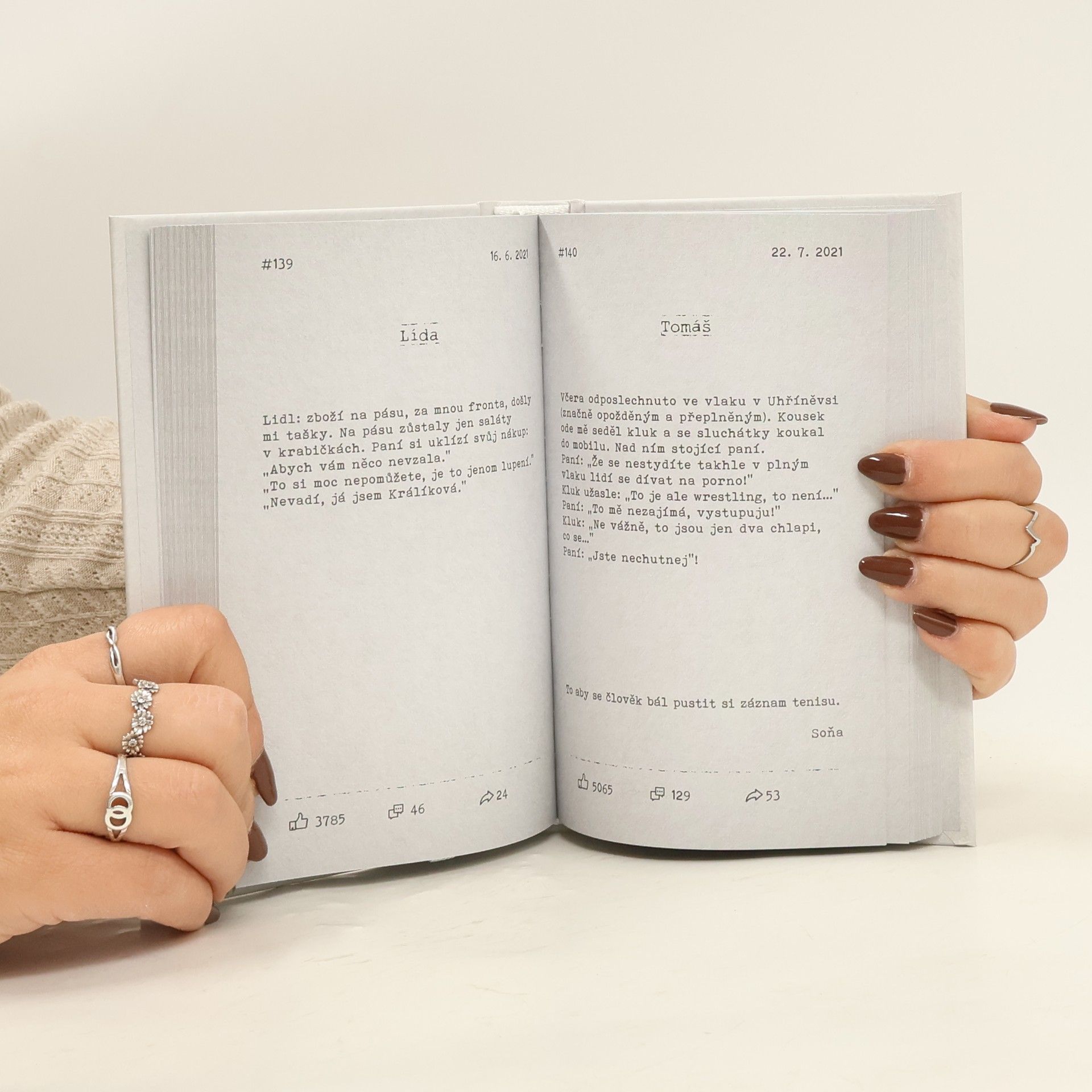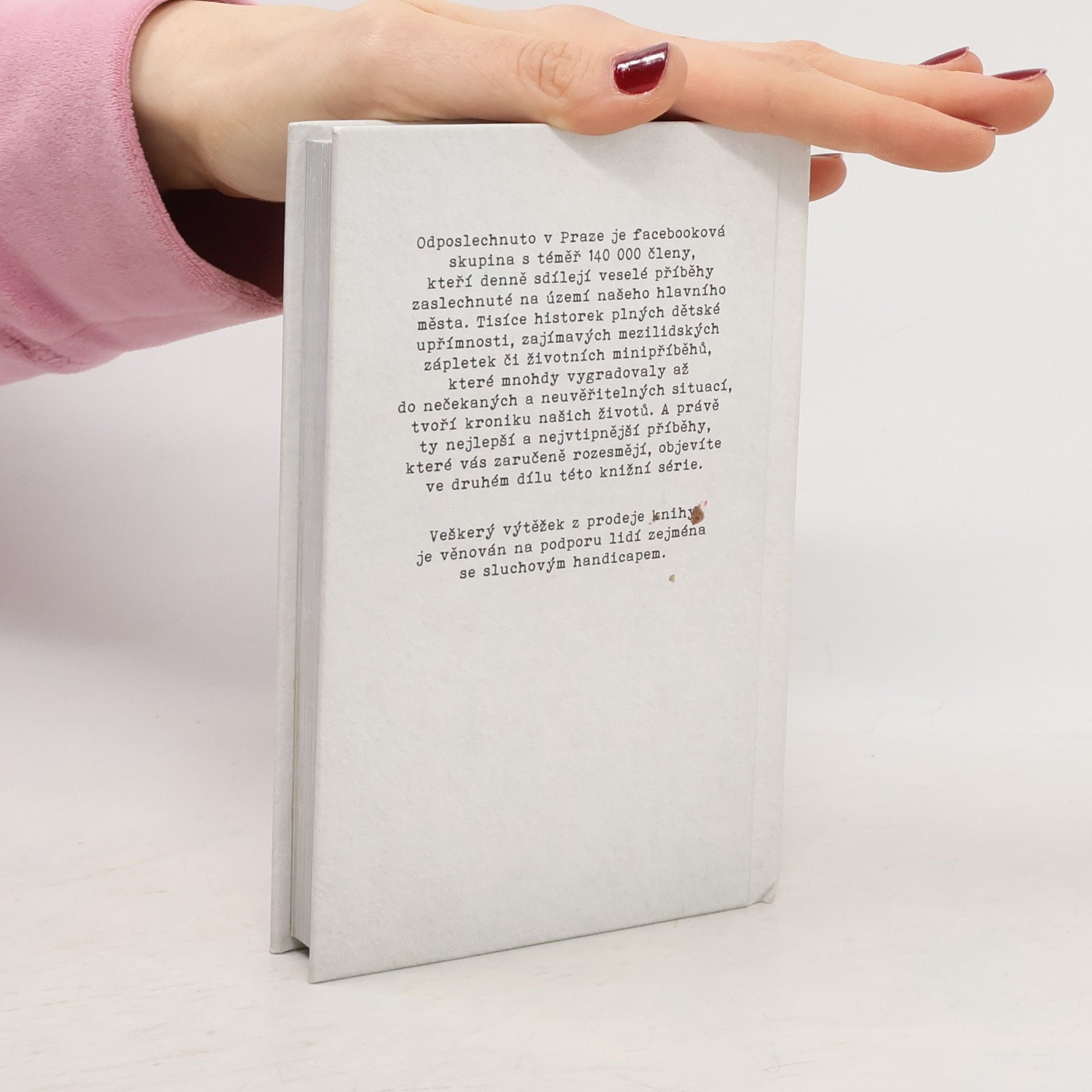 Odposlechnuto v Praze je FB skupina s téměř 140 000 členy, kteří denně sdílejí veselé příběhy zaslechnuté na území našeho hlavního města. Tisíce historek plných dětské upřímnosti, zajímavých mezilidských zápletek či životních minipříběhů, které mnohdy vygradovaly až do nečekaných a neuvěřitelných situací, tvoří kroniku našich životů. A právě ty nejlepší a nejvtipnější příběhy, které vás zaručeně rozesmějí, objevíte ve druhém dílu této knižní série.