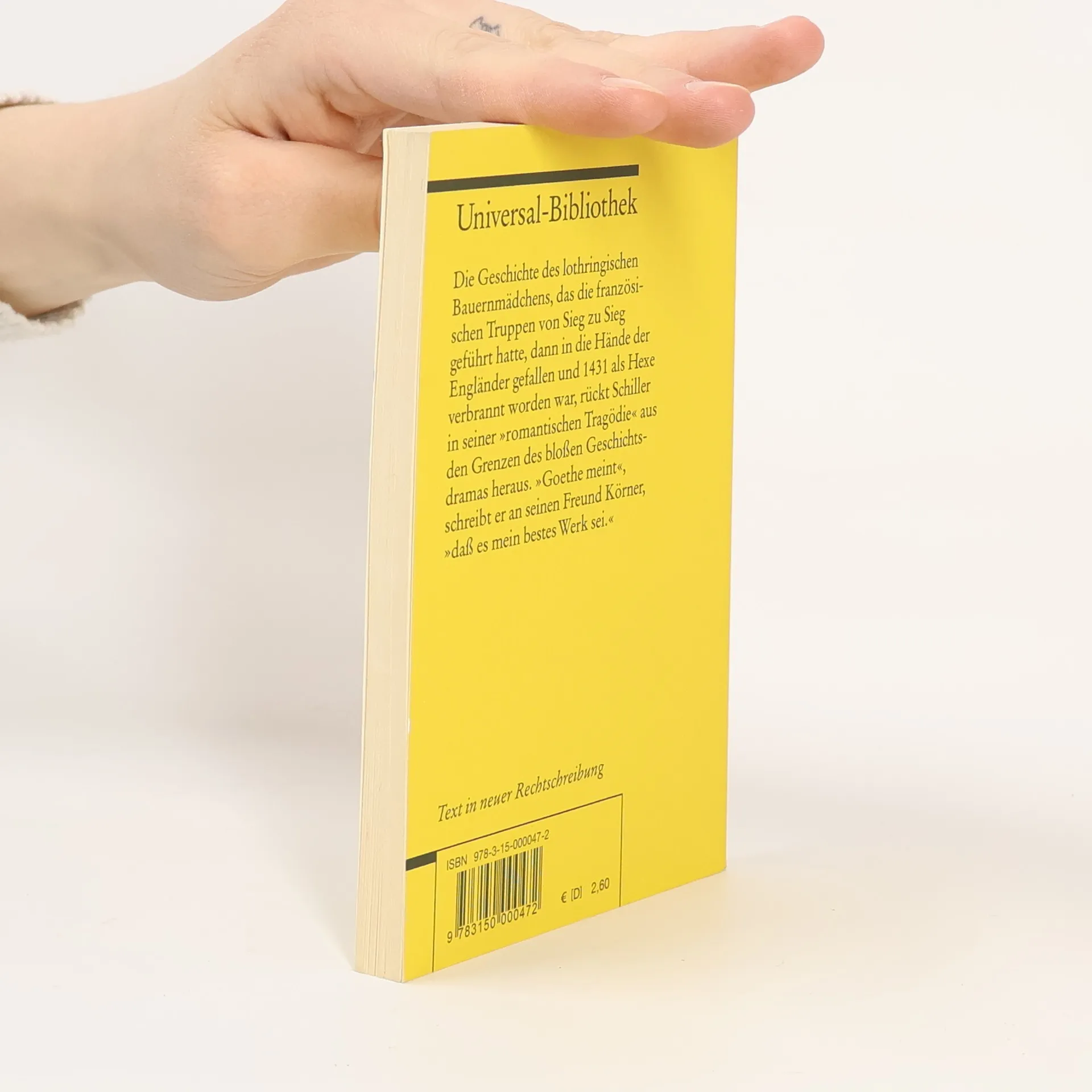 Mit seinem 1801 erschienenen und uraufgeführten Drama "Die Jungfrau von Orleans" hatte Friedrich Schiller zu seinen Lebzeiten großen Erfolg. Die Geschichte des lothringischen Bauernmädchens Johanna von Orleans, das - unter Berufung auf göttliche Eingebung - die französischen Truppen von Sieg zu Sieg führte, dann in die Hände der Engländer fiel und 1431 als Hexe verbrannt wurde, rückt Schiller aus den Grenzen des bloßen Geschichtsdramas heraus - Johanna wird bei Schiller nicht auf dem Scheiterhaufen verbrannt, sondern erlebt die Apotheose auf dem Schlachtfeld. Formal nimmt diese "romantische Tragödie" eine Sonderstellung in Schillers Werk ein: die dramatische Entwicklung wird durch lyrische Passagen unterbrochen, die Versformen sind ungewöhnlich vielfältig und reichen vom Blankvers über die feierliche Form der Stanze bis hin zum jambischen Trimeter, dem Dramenvers der antiken Tragödie. Text aus Reclams Universal-Bibliothek mit Verszählung der gedruckten Ausgabe.