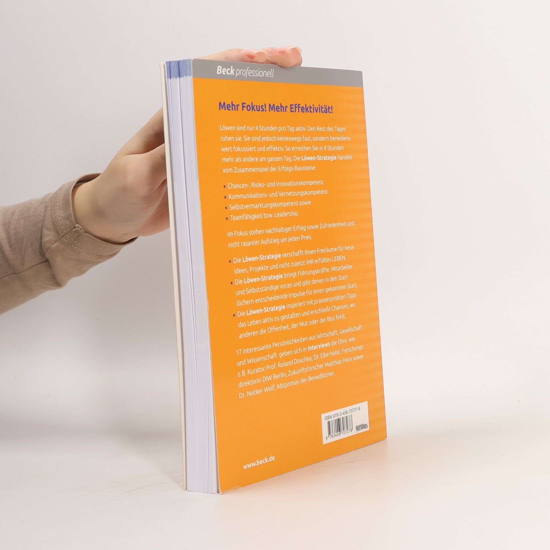 Mehr Fokus! Mehr Effektivität! Löwen sind nur 4 Stunden pro Tag aktiv. Den Rest des Tages ruhen sie. Sie sind jedoch keineswegs faul, sondern beneidenswert fokussiert und effektiv. So erreichen Sie in 4 Stunden mehr als andere am ganzen Tag. Die Löwen-Strategie handelt vom Zusammenspiel der Erfolgs-Bausteine: - Chancen-, Risiko- und Innovationskompetenz - Kommunikations- und Vernetzungskompetenz - Selbstvermarktungskompetenz sowie - Teamfähigkeit bzw. Leadership. Im Fokus stehen nachhaltiger Erfolg sowie Zufriedenheit und nicht rasanter Aufstieg um jeden Preis. Die Löwen-Strategie verschafft Ihnen Freiräume für neue Ideen, Projekte und nicht zuletzt IHR erfülltes LEBEN. Die Löwen-Strategie bringt Führungskräfte, Mitarbeiter und Selbstständige voran und gibt denen in den Startlöchern entscheidende Impulse für einen gekonnten Start. Die Löwen-Strategie inspiriert mit praxiserprobten Tipps das Leben aktiv zu gestalten und erschließt Chancen, wo anderen die Offenheit, der Mut oder der Biss fehlt. 17 interessante Persönlichkeiten aus Wirtschaft, Gesellschaft und Wissenschaft geben sich in Interviews die Ehre, wie z.B. Kurator Prof. Roland Doschka, Dr. Elke Holst, Forschungsdirektorin DIW Berlin, Zukunftsforscher Matthias Horx sowie Dr. Notker Wolf, Abtprimas der Benediktiner.