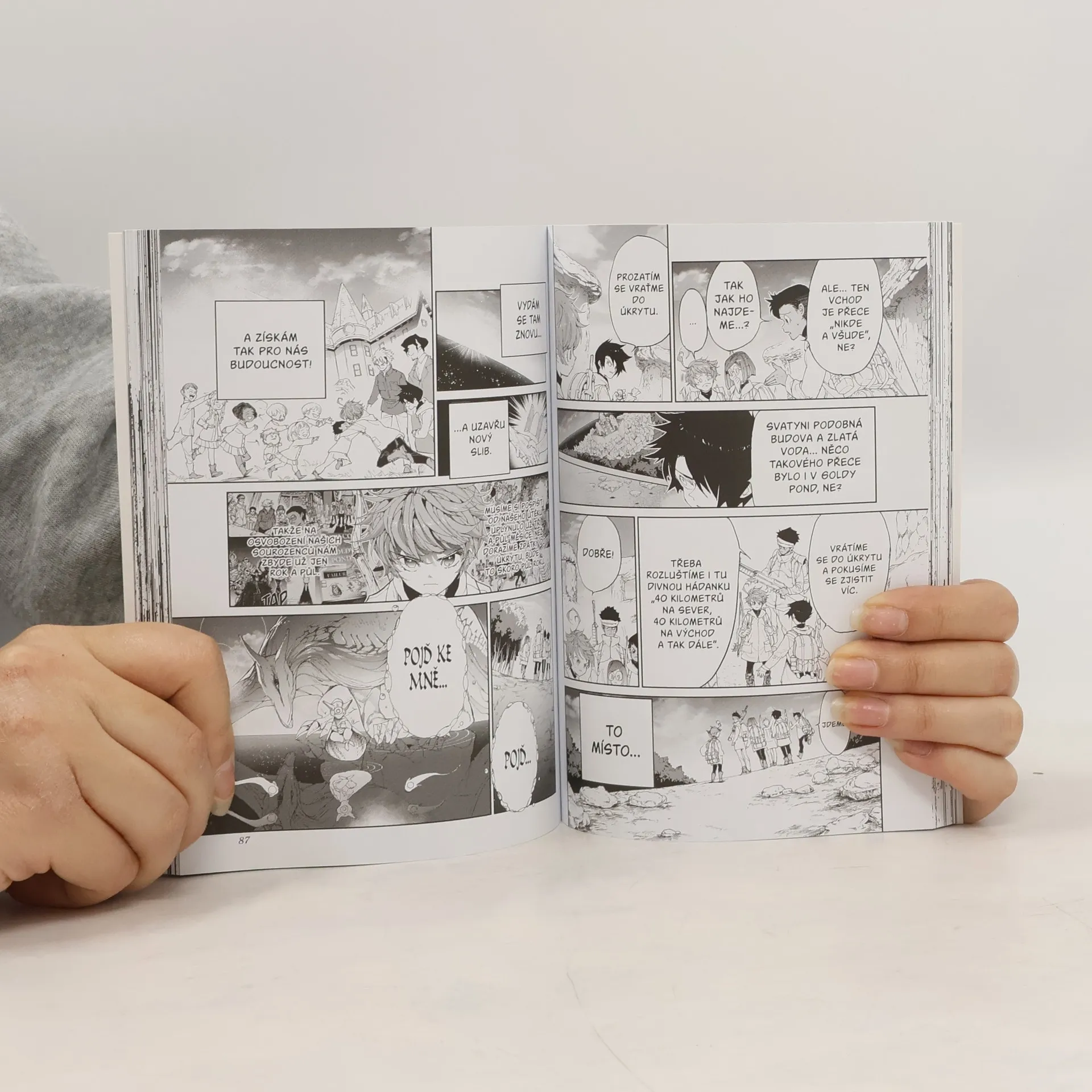 Démoni z Goldy Pond jsou mrtví, ať žije svoboda! Jenže... ne tak docela. Emma a její přátelé totiž dosáhnou skutečné svobody teprve tehdy, až se jim podaří opustit svět démonu. K tomu je třeba nalézt tajemných Sedm zdí, a také osvobodit zbylé děti z Grace Fieldu. Začíná nová etapa dobrodružství, na jejímž konci čeká buďto vytoužená budoucnost, nebo krutá smrt.