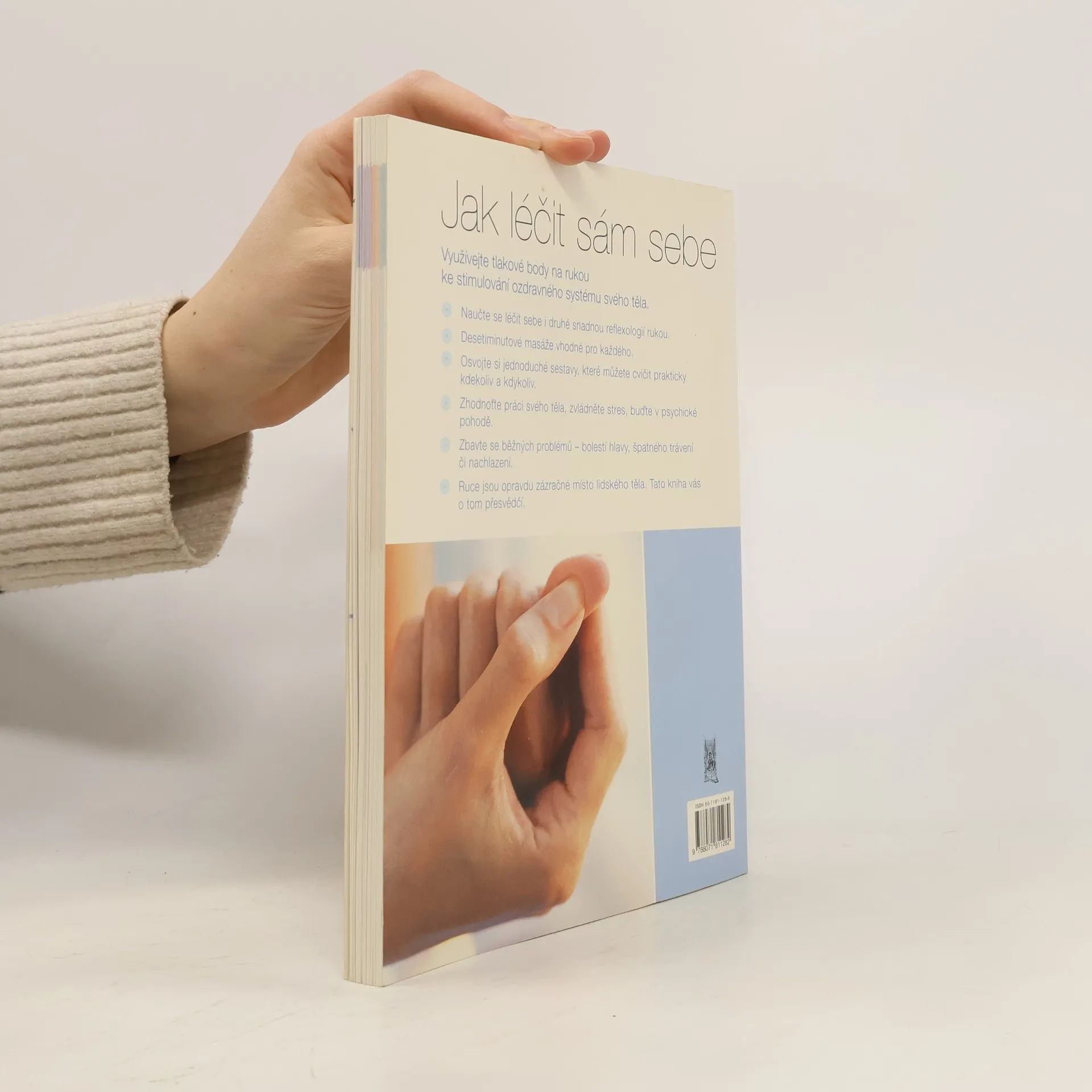 Využití tlakových bodů na rukou ke stimulaci ozdravného systému těla. Praktické rady jak léčit sebe i druhé. Stimulací reflexních bodů na ruce je možno uvolnit proudy energie po celém těle. Léčení prostřednictvím reflexních zón podporuje proces uzdravování v příslušné části těla. Všechny cviky jsou doprovázeny fotografiemi a podrobnými návody. (www.mlp.cz)