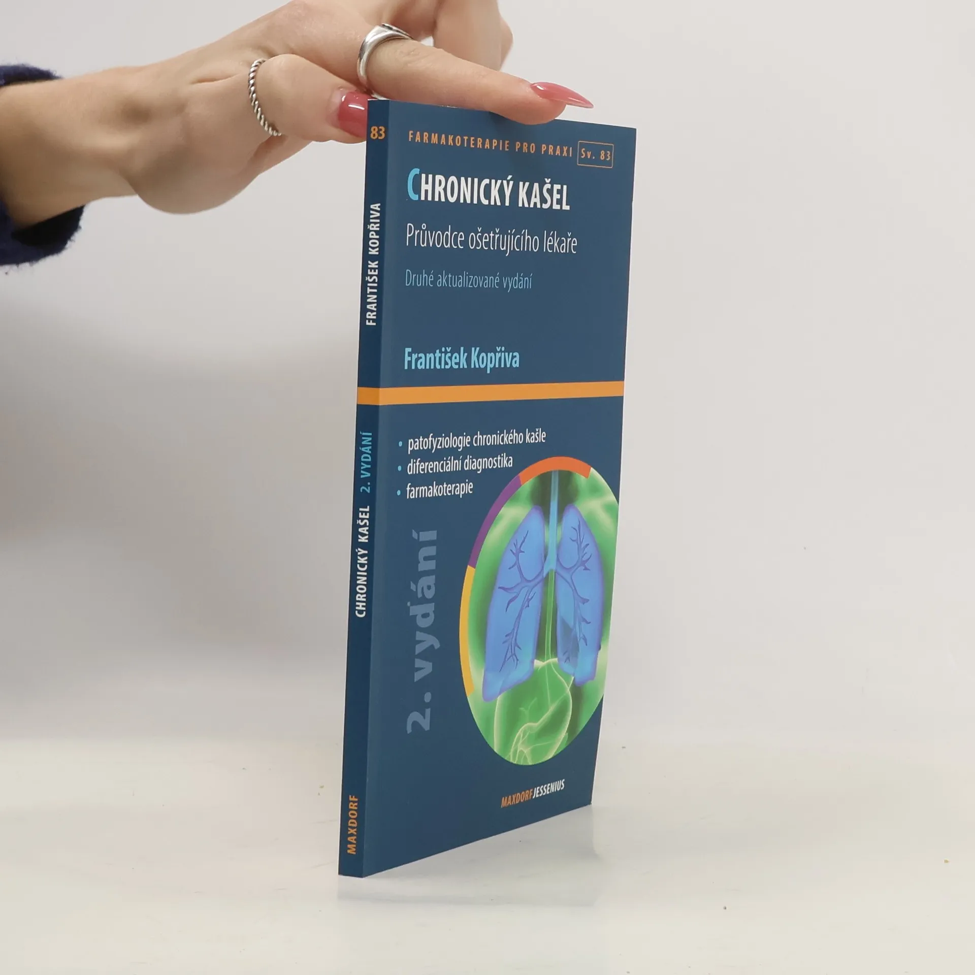 Kašel je nejčastějším nespecifickým příznakem onemocnění dýchacího ústrojí. Málokdo z lékařů dnes podceňuje diagnostický význam kašle, v jeho farmakoterapii však bohužel převažuje zcela paušální přístup. To vše dále nabývá na významu u chronického kašle, který již obvykle nemívá banální příčinu a je sám o sobě důvodem k pečlivému vyšetření v ambulanci pneumologa, popř. na pneumologickém lůžkovém oddělení. Chronický kašel se však často pro nemocného stává velkým trápením i sám o sobě, bere mu síly i radost ze života. Nemocného, kromě nepříjemných vjemů, často také trápí fakt, že neovladatelným kašláním na sebe strhává nepříjemnou pozornost, těžší kašel vede k vyslovené společenské ostrakizaci.Knížka prof. MUDr. Františka Kopřivy, Ph.D., je vynikající praktickou příručkou, která – aniž by jakkoli podceňovala význam kauzální terapie příčiny kašle – může být pro každého ošetřujícího lékaře průvodcem v racionální farmakoterapii tohoto symptomu. Publikace vychází ve známé edici Farmakoterapie pro praxi.