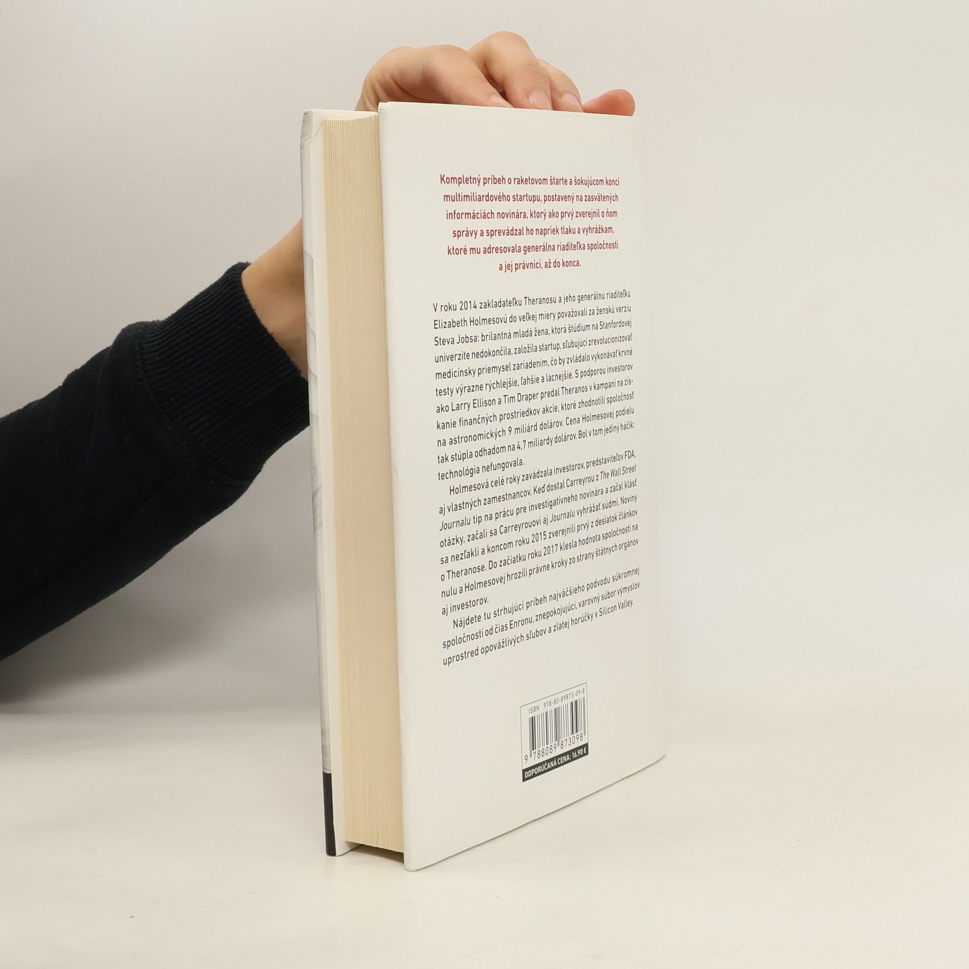 Príbeh o raketovom štarte a šokujúcom konci multimiliardového startupu je založený na zasvätených informáciách novinára, ktorý ako prvý zverejnil správy o spoločnosti a čelil tlaku a vyhrážkam od generálnej riaditeľky a jej právnikov. V roku 2014 bola zakladateľka Theranosu, Elizabeth Holmesová, považovaná za ženskú verziu Steva Jobsa. Nedokončila štúdium na Stanfordovej univerzite a založila startup, ktorý sľuboval revolúciu v medicínskom priemysle prostredníctvom zariadenia na rýchle a lacné krvné testy. S podporou významných investorov sa hodnota Theranosa vyšplhala na 9 miliárd dolárov, pričom Holmesová mala odhadovaný podiel vo výške 4,7 miliardy dolárov. Problém bol, že technológia nefungovala. Holmesová roky zavádzala investorov, FDA aj zamestnancov. Keď novinár Carreyrou z The Wall Street Journal začal klásť otázky, čelil právnym hrozbám. Napriek tomu noviny v roku 2015 zverejnili prvý článok o Theranose. Do začiatku roku 2017 klesla hodnota spoločnosti na nulu a Holmesová čelila právnym krokom zo strany štátnych orgánov a investorov. Tento strhujúci príbeh predstavuje najväčší podvod súkromnej spoločnosti od čias Enronu a varuje pred nebezpečnými sľubmi v Silicon Valley.