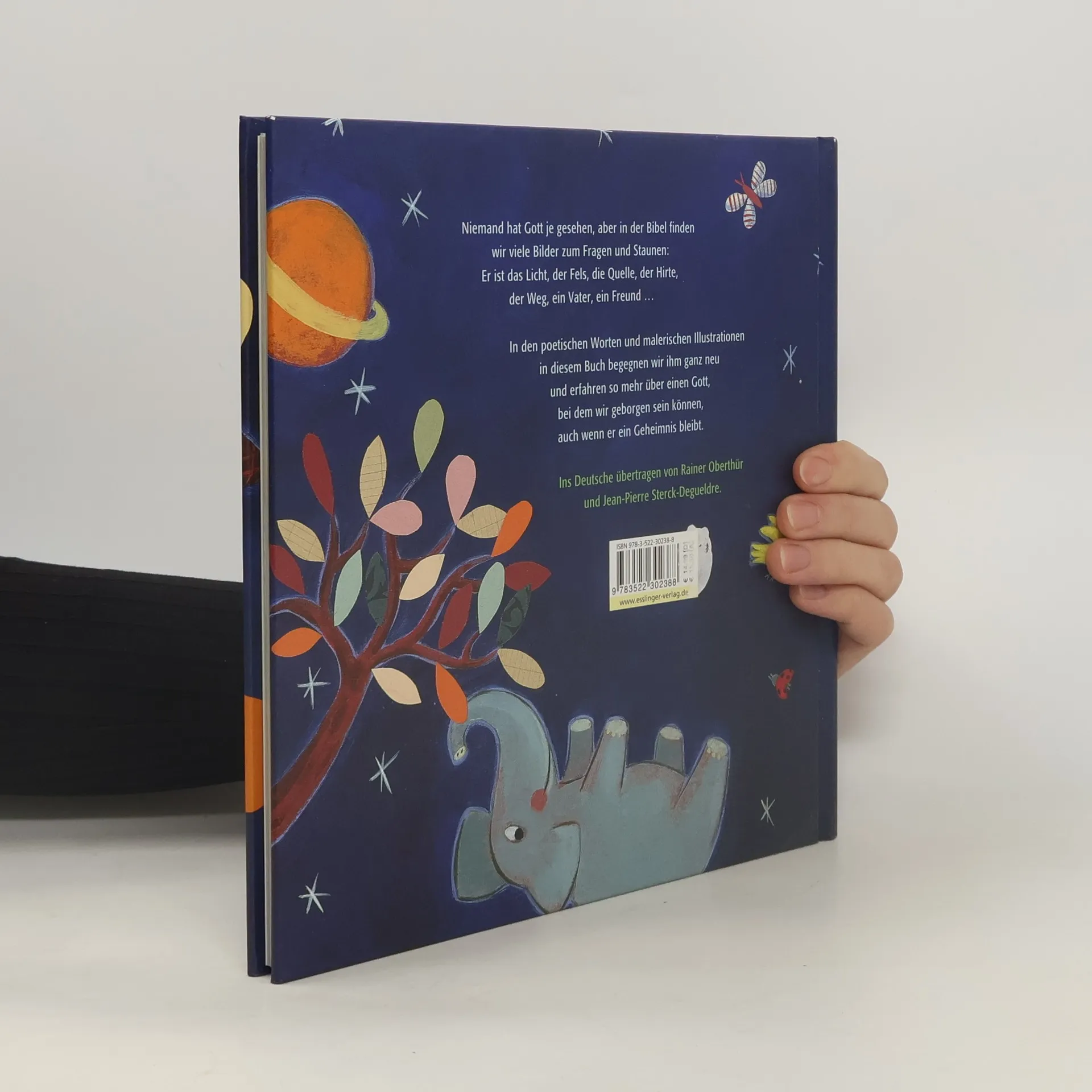 Niemand hat Gott je gesehen, aber in der Bibel finden wir viele Bilder zum Fragen und Staunen: Er ist das Licht, der Fels, die Quelle, der Hirte, der Weg, ein Vater, ein Freund … In den poetischen Worten und malerischen Illustrationen in diesem Buch begegnen wir ihm ganz neu und erfahren so mehr über einen Gott, bei dem wir geborgen sein können, auch wenn er ein Geheimnis bleibt. Ins Deutsche übertragen von Rainer Oberthür und Jean-Pierre Sterck-Degueldre. Ab 5 Jahren