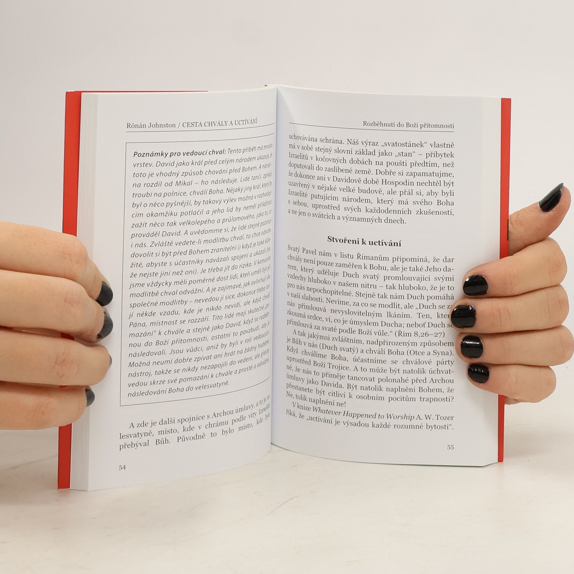 Autor spojuje praktickou zkušenost muzikanta s duchovní zkušeností i solidním teologickým ukotvením a přináší cenné rady pro všechny, kdo se zajímají o modlitbu chval a uctívání jako o cestu k Bohu. Vysvětluje, co je podstatou tohoto způsobu modlitby i jak postoj chvály před Bohem souvisí s naším životem a jak ho do něj vnášet. Přestože jde o fenomén spojený s charismatickou obnovou a autor sám z tohoto prostředí vychází, jde ve svém chápání modlitby chval za užívanou formu a překračuje ji. Přibližuje tak podstatu modlitby chval a uctívání také těm, kteří mají blíže k jiným stylům, a dotýká se toho, co je všem modlitebním přístupům společné. Svěží text prokládaný osobními zážitky a zkušenostmi, a především upřímnou vírou, bude inspirací i praktickým přínosem jak těm, kdo se o worship a modlitbu chval teprve začali zajímat, tak i těm, kdo je již pravidelně navštěvují nebo vedou.