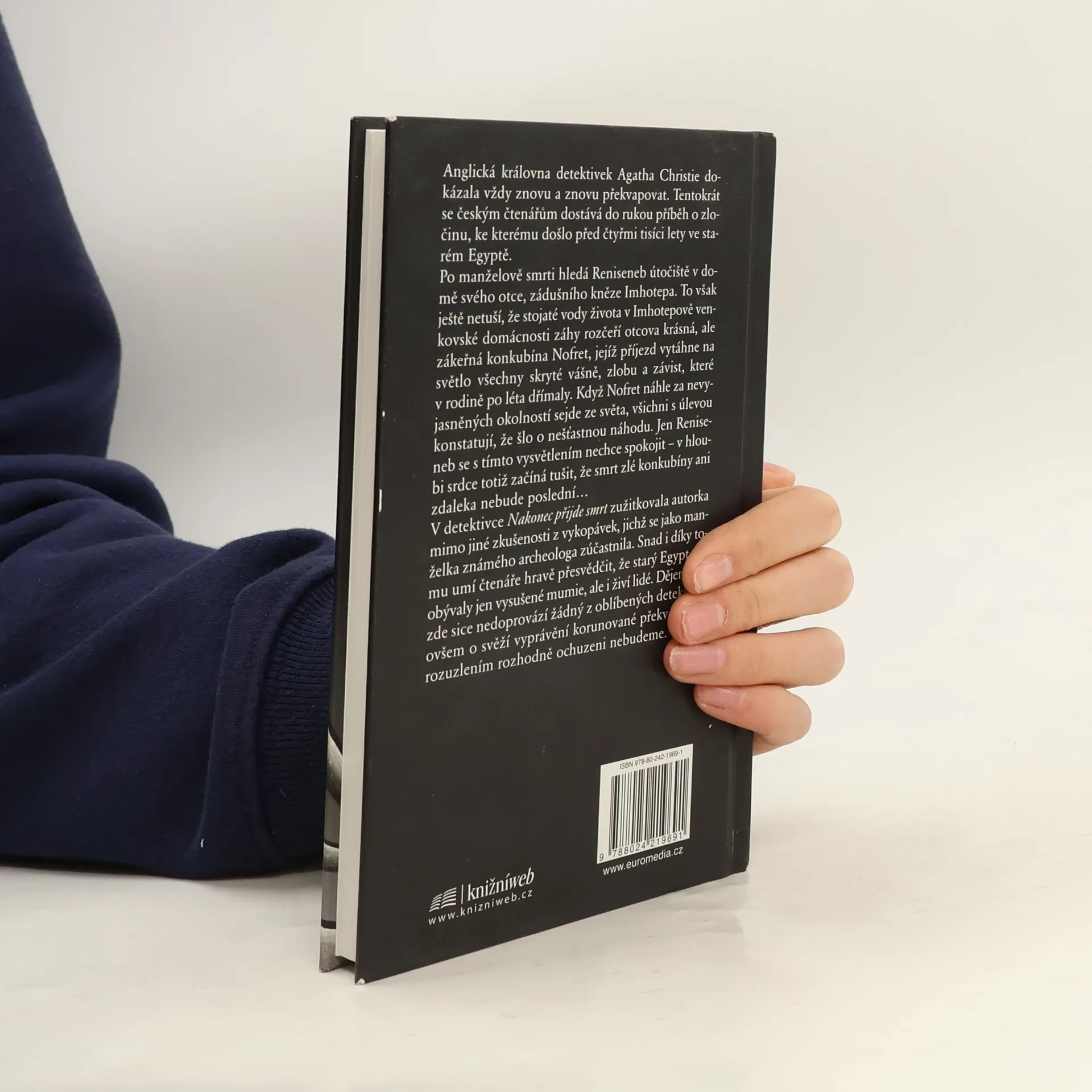 Anglická královna detektivek Agatha Christie dokázala vždy znovu a znovu překvapovat. Tentokrát se českým čtenářům dostává do rukou příběh o zločinu, ke kterému došlo před čtyřmi tisíci lety ve starém Egyptě. Po manželově smrti hledá Reniseneb útočiště v domě svého otce, zádušního kněze Imhotepa. To však ještě netuší, že stojaté vody života v Imhotepově venkovské domácnosti záhy rozčeří otcova krásná, ale zákeřná konkubína Nofret, jejíž příjezd vytáhne na světlo všechny skryté vášně, zlobu a závist, které v rodině po léta dřímaly. Když Nofret náhle za nevyjasněných okolností sejde ze světa, všichni s úlevou konstatují, že šlo o nešťastnou náhodu. Jen Reniseneb se s tímto vysvětlením nechce spokojit – v hloubi srdce totiž začíná tušit, že smrt zlé konkubíny ani zdaleka nebude poslední… V detektivce Nakonec přijde smrt zužitkovala autorka mimo jiné zkušenosti z vykopávek, jichž se jako manželka známého archeologa zúčastnila. Snad i díky tomu umí čtenáře hravě přesvědčit, že starý Egypt neobývaly jen vysušené mumie, ale i živí lidé. Dějem nás zde sice nedoprovází žádný z oblíbených detektivů, ovšem o svěží vyprávění korunované překvapivým rozuzlením rozhodně ochuzeni nebudeme.