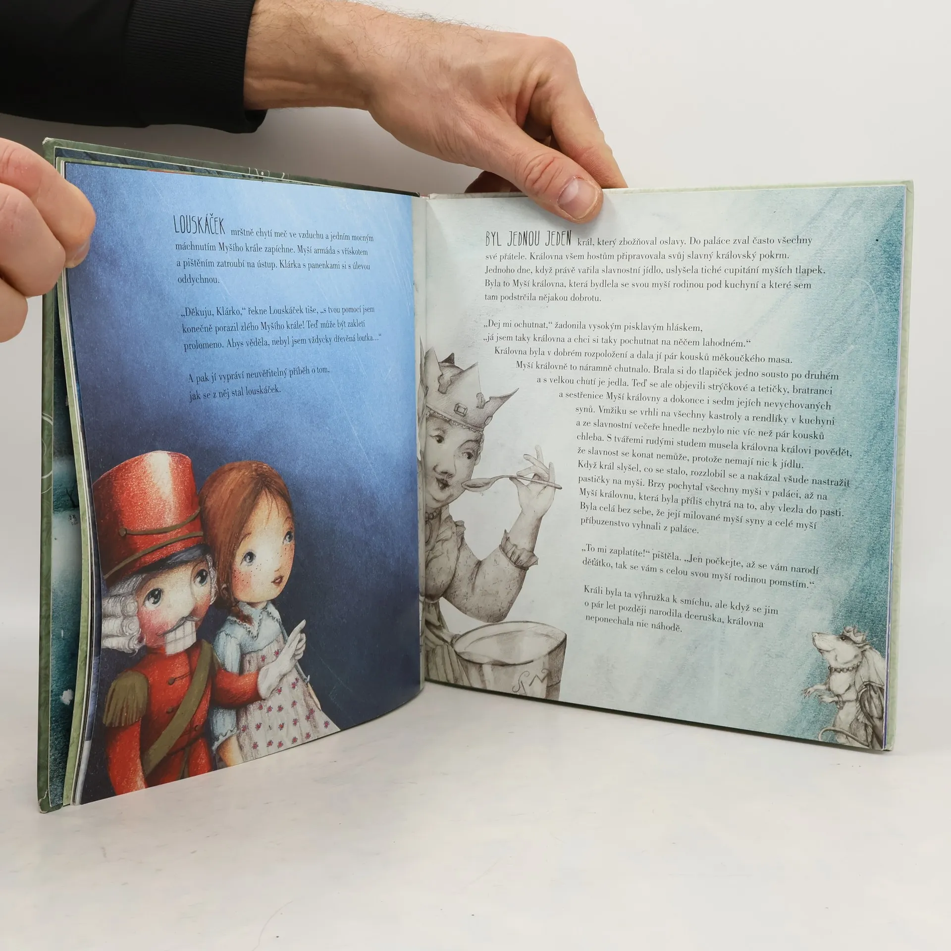 Je Štědrý večer a Klárka a její bratr jsou vzrušením celí bez sebe. Každý rok jim strýček Drosselmeyer přinese krásné vánoční dárky. Tento rok dostala Klárka dřevěného panáčka. Je to Louskáček, vojáček se zoubky na louskání ořechů. Jejímu bráškovi připadá, že loutka vypadá s těmi velkými zuby trochu hloupě, ale Klárce se Louskáček moc líbí. Zvlášť jeho velké hluboké oči. Nevypadají trochu smutně? Té magické noci Klárka zjistí, že vojáček není jenom obyčejnou loutkou, neumí jen louskat oříšky, ale spoustu dalších věcí, a taky že má velké srdce… Byl to odvážný voják, který se zamiloval do skutečné princezny. Klasický vánoční příběh E. T. A. Hoffmanna vypravuje An Leysenová po svém, s roztomilými detaily a překvapivým koncem. Romantický příběh, doprovázený nádhernými ilustracemi, přenese děti do kouzelného světa Myšího krále a dalších pohádkových bytostí. Kniha je určena pro děti od 5 let.