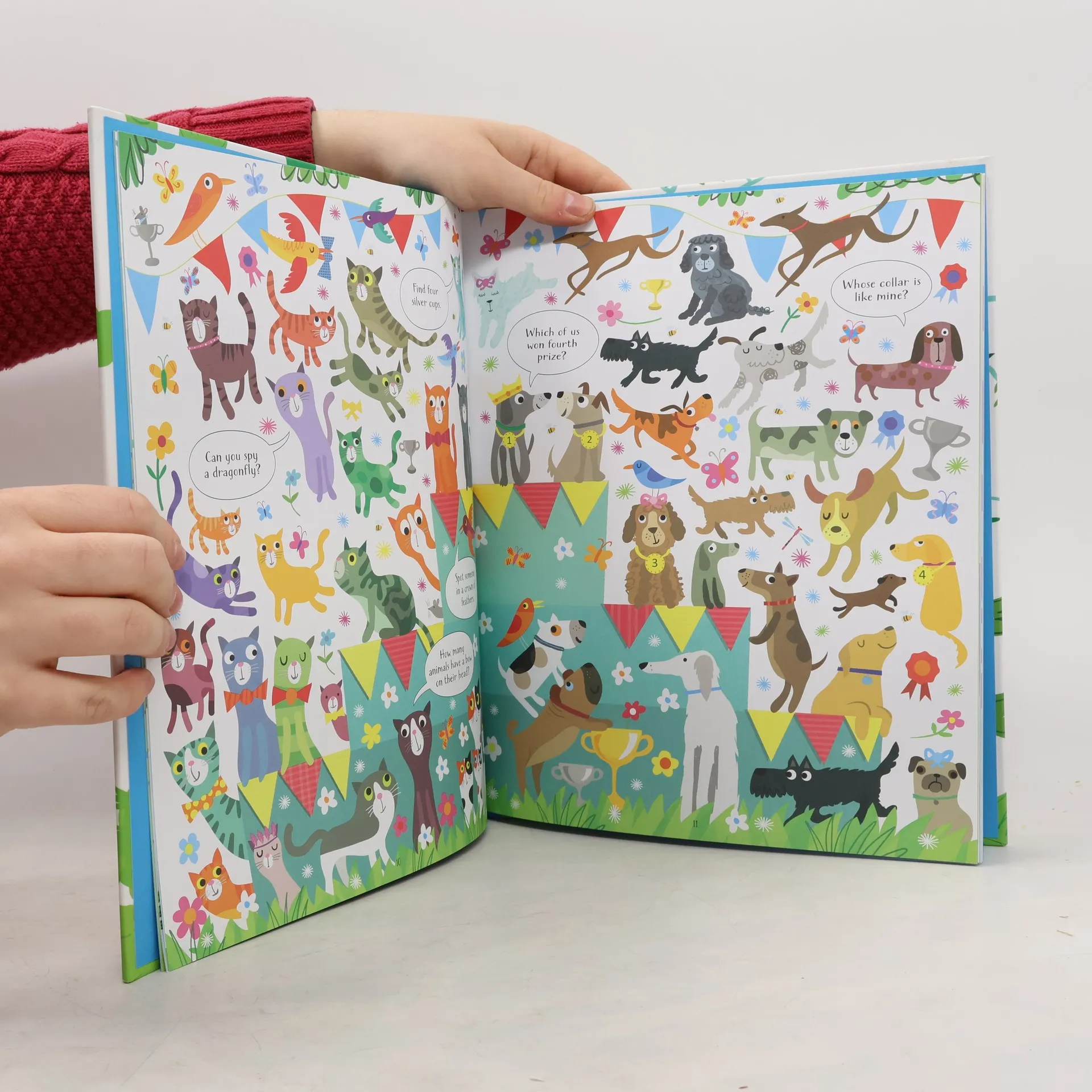 This book contains illustrated animal puzzles. Each page is full of things to find, similarities to spot, objects to detect, and hundreds of details to talk about