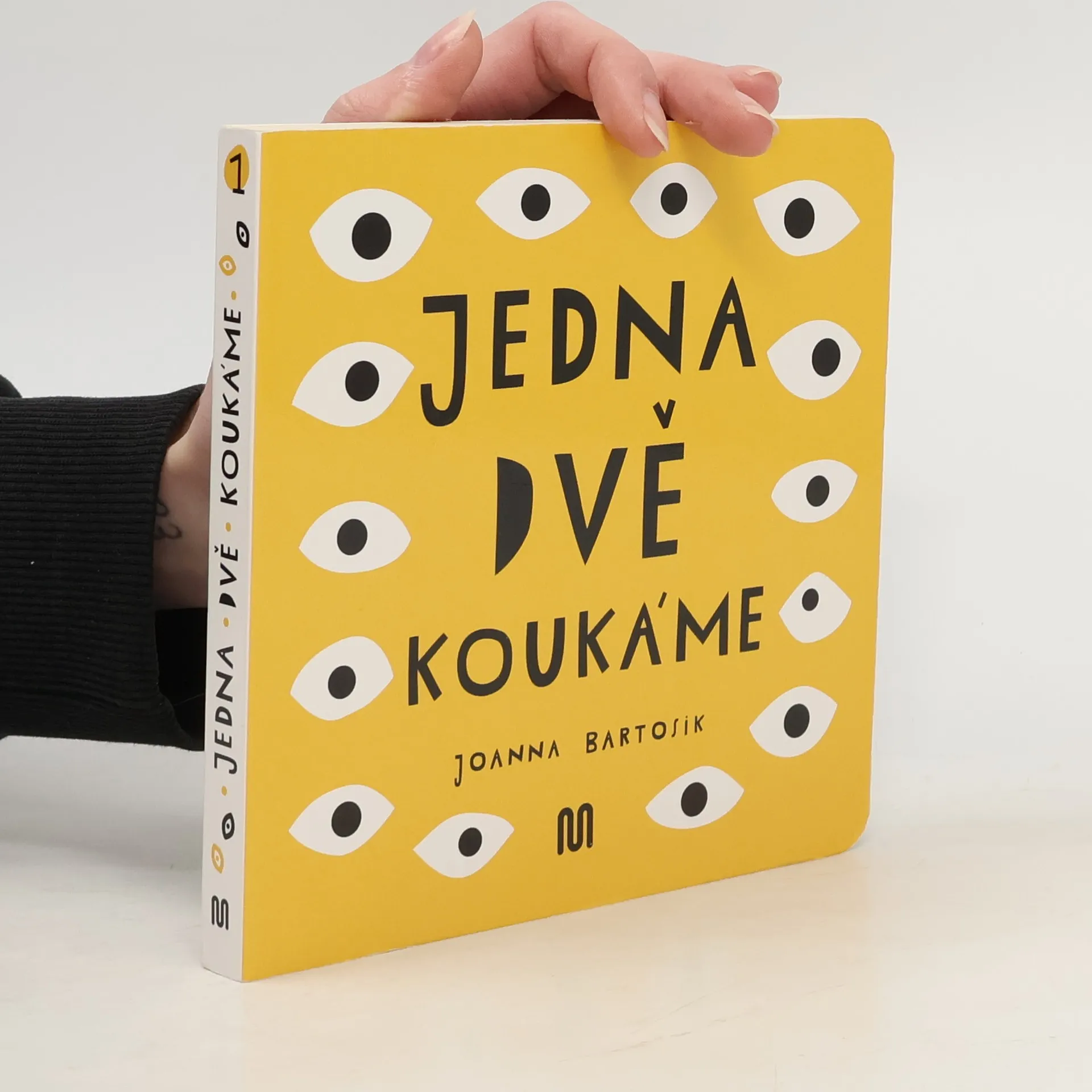 Knížečka Jedna dvě - koukáme je pro (ne)čtenáře ve věku 0-12 měsíců, kteří si díky ní bystří a cvičí zrak. Autorka se vzdává textu ve prospěch obrázků určených k rozvíjení zrakových schopností a pozornosti nejmenších dětí. Najdeme tu ostře kontrastní obrázky v černé, bílé, žluté a červené barvě, které pomáhají dětem se naučit lépe vidět a poznávat svět. Miminka ráda pozorují tváře, a tak se tu na ně usmívá i banán a psí kost. Projekt trojice knížek Jedna dvě - koukáme, Jedna dvě - slyšíme a Jedna dvě - mluvíme byl v Polsku oceněn v prestižní soutěži Institutu knihy.