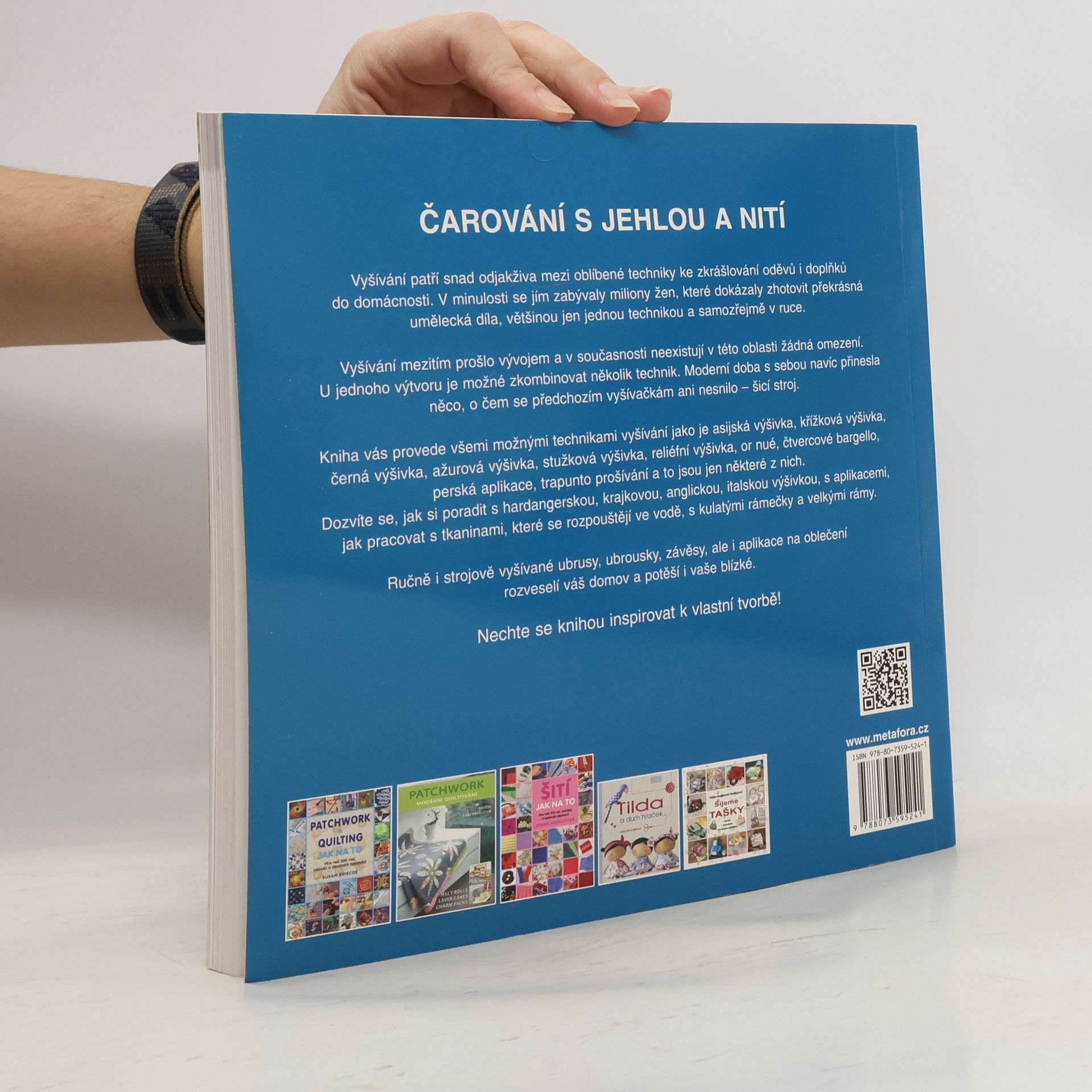 Čarování s jehlou a nití, světové techniky ručního i strojového vyšívání Vyšívání patří snad odjakživa mezi oblíbené techniky ke zkrášlování oděvů i doplňků do domácnosti. V minulosti se jím zabývaly miliony žen, které dokázaly zhotovit překrásná umělecká díla, většinou jen jednou technikou a samozřejmě v ruce. Vyšívání mezitím prošlo vývojem a v současnosti neexistují v této oblasti žádná omezení. U jednoho výtvoru je možné zkombinovat několik technik. Moderní doba s sebou navíc přinesla něco, o čem se předchozím vyšívačkám ani nesnilo – šicí stroj. Kniha vás provede všemi možnými technikami vyšívání jako je asijská výšivka, černá výšivka, or nué, čtvercové bargello, perská aplikace, trapunto prošívání, a to jsou jen některé z nich. Dozvíte se, jak si poradit s hardangerskou, krajkovou, anglickou, italskou výšivkou, s aplikacemi, jak pracovat s tkaninami, které se rozpouštějí ve vodě, s kulatými rámečky a velkými rámy. Ručně i strojově vyšívané ubrusy, ubrousky, závěsy, ale i aplikace na oblečení rozveselí váš domov a potěší i vaše blízké. Nechte se knihou inspirovat k vlastní tvorbě!
