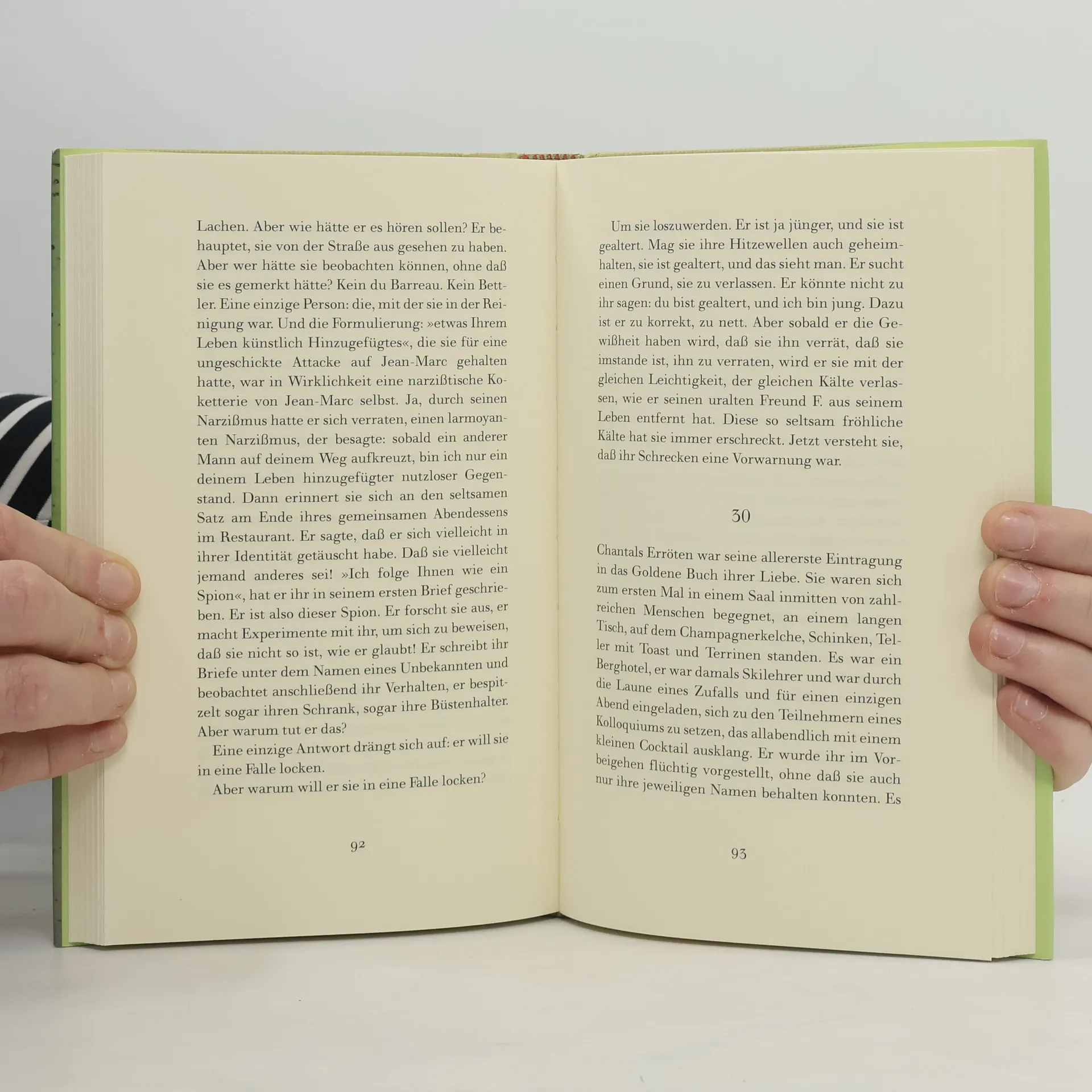 Chantal und Jean-Marc sind ein glückliches Paar. Als Chantal eines Tages entdeckt, daß sich die Männer nicht mehr nach ihr umdrehen, ist Jean-Marc voller Mitgefühl. Dann, eines Tages bekommt sie einen Liebesbrief. Für kurze Zeit entfacht der anonyme Bewunderer - der Stammgast im Bistro, oder vielleicht der Bettler an der Ecke? - eine neue Leidenschaft in ihr. Aber wie reagiert Jean-Marc? Fast unmerklich wird aus der höchst realistischen Liebesgeschichte für die beiden ein Alptraum. »Vor der Wucht dieses aufregenden Textes gibt es kein Entkommen.« Verena Auffermann, SÜDDEUTSCHE ZEITUNG