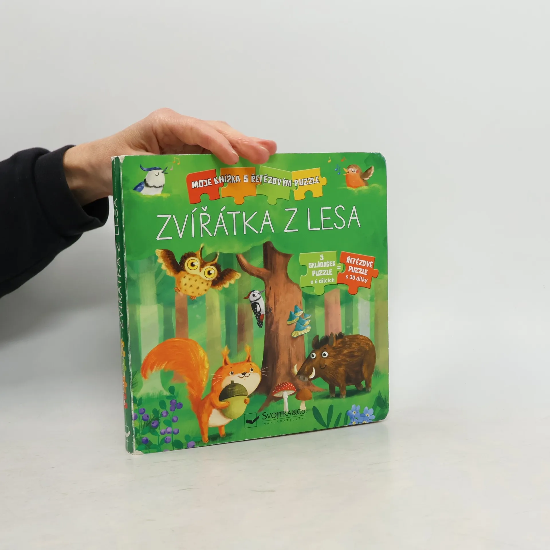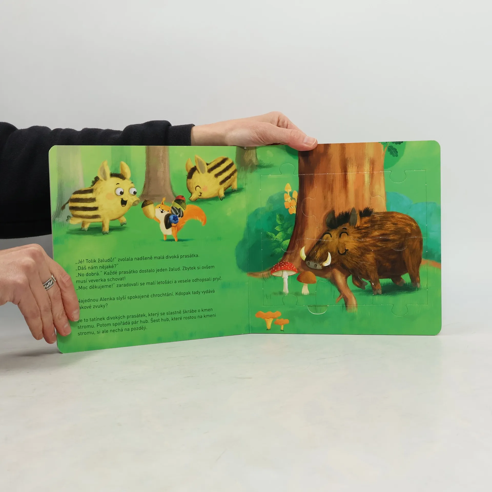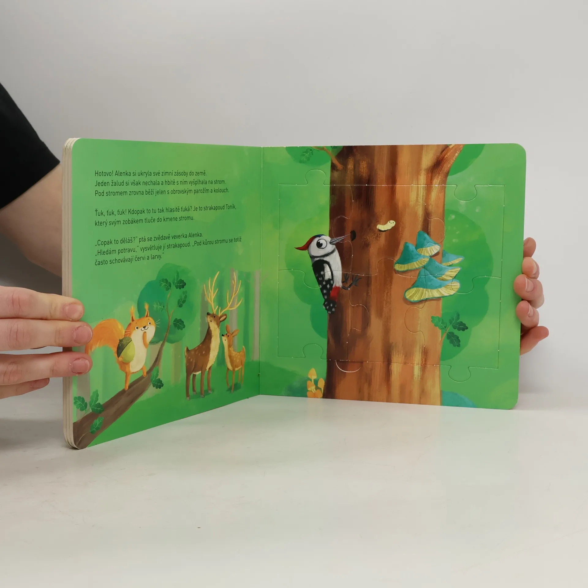 Knížka s tuhými listy a skládankami vypráví příběh veverky Alenky a jejích kamarádů z lesa. Publikace obsahuje pět menších skládaček o šesti dílcích, které se dají spojit do jedné velké. Pod každou skládačkou se skrývají hádanky a otázky k příběhu veverky Alenky. Spolu s ní a dalšími lesními zvířátky mohou zvídavé děti prozkoumávat les. Nakladatelská anotace. Kráceno.