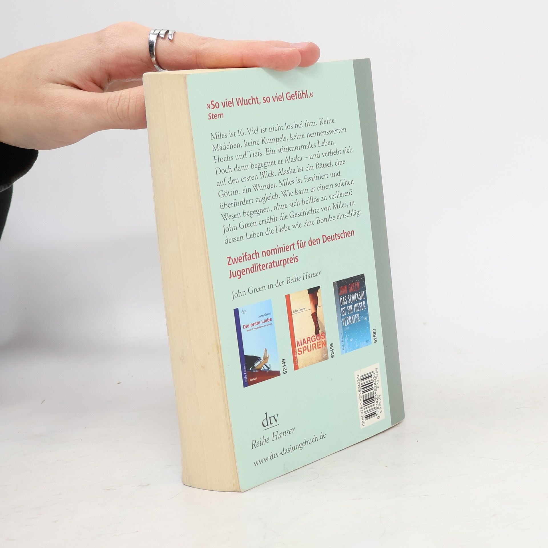Zweifach nominiert für den Deutschen Jugendliteraturpreis 2008. Miles hat die Schule gewechselt. Auf dem Internat verknallt er sich in die schöne Alaska. Sie ist das Zentrum ihres Sonnensystems, der magische Anziehungspunkt des Internats. Wer um sie kreist, ist glücklich und verletzlich gleichermaßen, euphorisch und immer nah am Schulverweis. Alaska mag Lyrik, nächtliche Diskussionen über philosophische Absurditäten, heimliche Glimmstängel im Wald und die echte wahre Liebe. Miles ist fasziniert und überfordert zugleich. Dass hinter dieser verrückten, aufgekratzten Schale etwas Weiches und Verletzliches steckt, ist offensichtlich. Wer ist Alaska wirklich? Mit Anmut und Humor, voller Selbstironie und sehr charmant erzählt Green die zu Tränen rührende Geschichte von Miles, in dessen Leben die Liebe wie eine Bombe einschlägt.