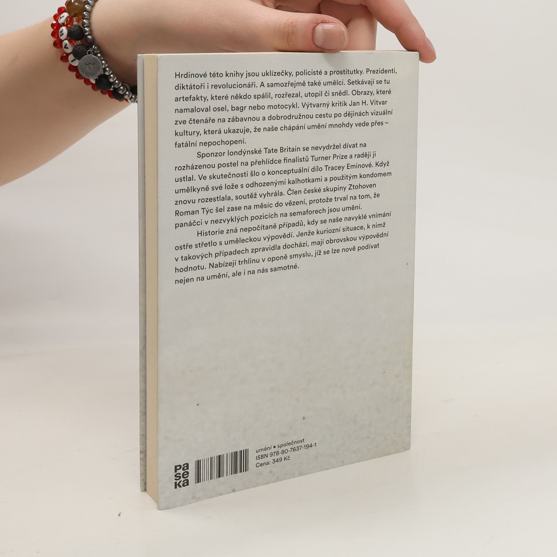 Hrdinové této knihy jsou uklízečky, policisté a prostitutky. Prezidenti, diktátoři i revolucionáři. A samozřejmě také umělci. Setkávají se tu artefakty, které někdo spálil, rozřezal, utopil či snědl. Obrazy, které namaloval osel, bagr nebo motocykl. Výtvarný kritik Jan H. Vitar zve čtenáře na zábavnou a dobrodružnou cestu po dějinách vizuální kultury, která ukazuje, že naše chápání umění mnohdy vede přes fatální nepochopení. Sponzor londýnské Tate Britain se nevydržel dívat na rozházenou postel na přehlídce finalistů Turner Prize a raději ji ustlal. Ve skutečnosti šlo o konceptuální dílo Tracey Eminové. Když umělkyně své lože s odhozenými kalhotkami a použitým kondomem znovu rozestlala, soutěž vyhrála. Člen české skupiny Ztohoven Roman Týc šel zase na měsíc do vězení, protože trval na tom, že panáčci v nezvyklých pozicích na semaforech jsou umění. Historie zná nepočitatelně případů, kdy se naše navyklé vnímání ostře střetlo s uměleckou výpovědí. Jenže kuriózní situace, k nimž v takových případech zpravidla dochází, mají obrovskou výpovědní hodnotu. Nabízejí trhlinu v oponě smyslu, jíž se lze nově podívat nejen na umění, ale i na nás samotné.