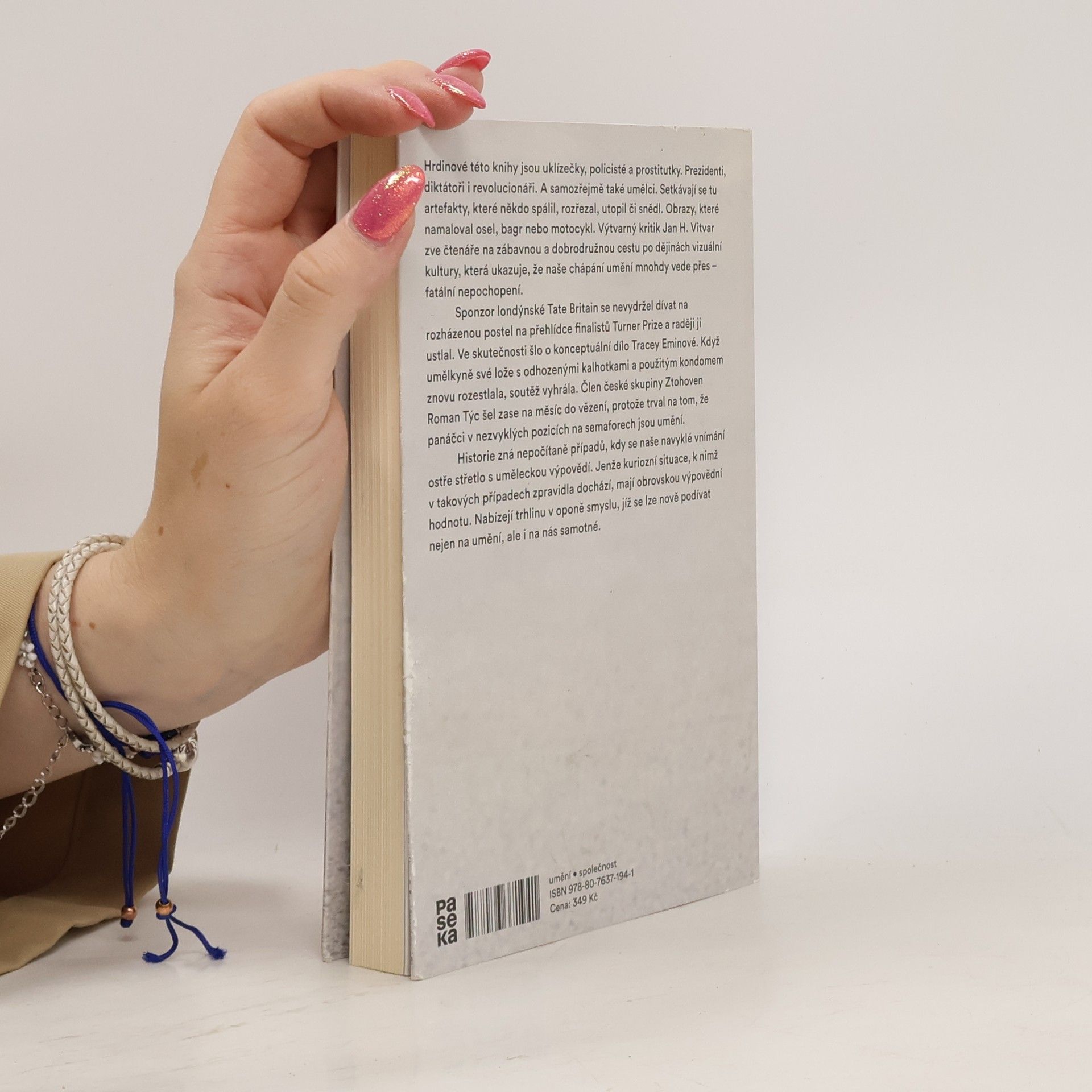 Hrdinové této knihy jsou uklízečky, policisté a prostitutky. Prezidenti, diktátoři i revolucionáři. A samozřejmě také umělci. Setkávají se tu artefakty, které někdo spálil, rozřezal, utopil či snědl. Obrazy, které namaloval osel, bagr nebo motocykl. Výtvarný kritik Jan H. Vitar zve čtenáře na zábavnou a dobrodružnou cestu po dějinách vizuální kultury, která ukazuje, že naše chápání umění mnohdy vede přes fatální nepochopení. Sponzor londýnské Tate Britain se nevydržel dívat na rozházenou postel na přehlídce finalistů Turner Prize a raději ji ustlal. Ve skutečnosti šlo o konceptuální dílo Tracey Eminové. Když umělkyně své lože s odhozenými kalhotkami a použitým kondomem znovu rozestlala, soutěž vyhrála. Člen české skupiny Ztohoven Roman Týc šel zase na měsíc do vězení, protože trval na tom, že panáčci v nezvyklých pozicích na semaforech jsou umění. Historie zná nepočitatelně případů, kdy se naše navyklé vnímání ostře střetlo s uměleckou výpovědí. Jenže kuriózní situace, k nimž v takových případech zpravidla dochází, mají obrovskou výpovědní hodnotu. Nabízejí trhlinu v oponě smyslu, jíž se lze nově podívat nejen na umění, ale i na nás samotné.