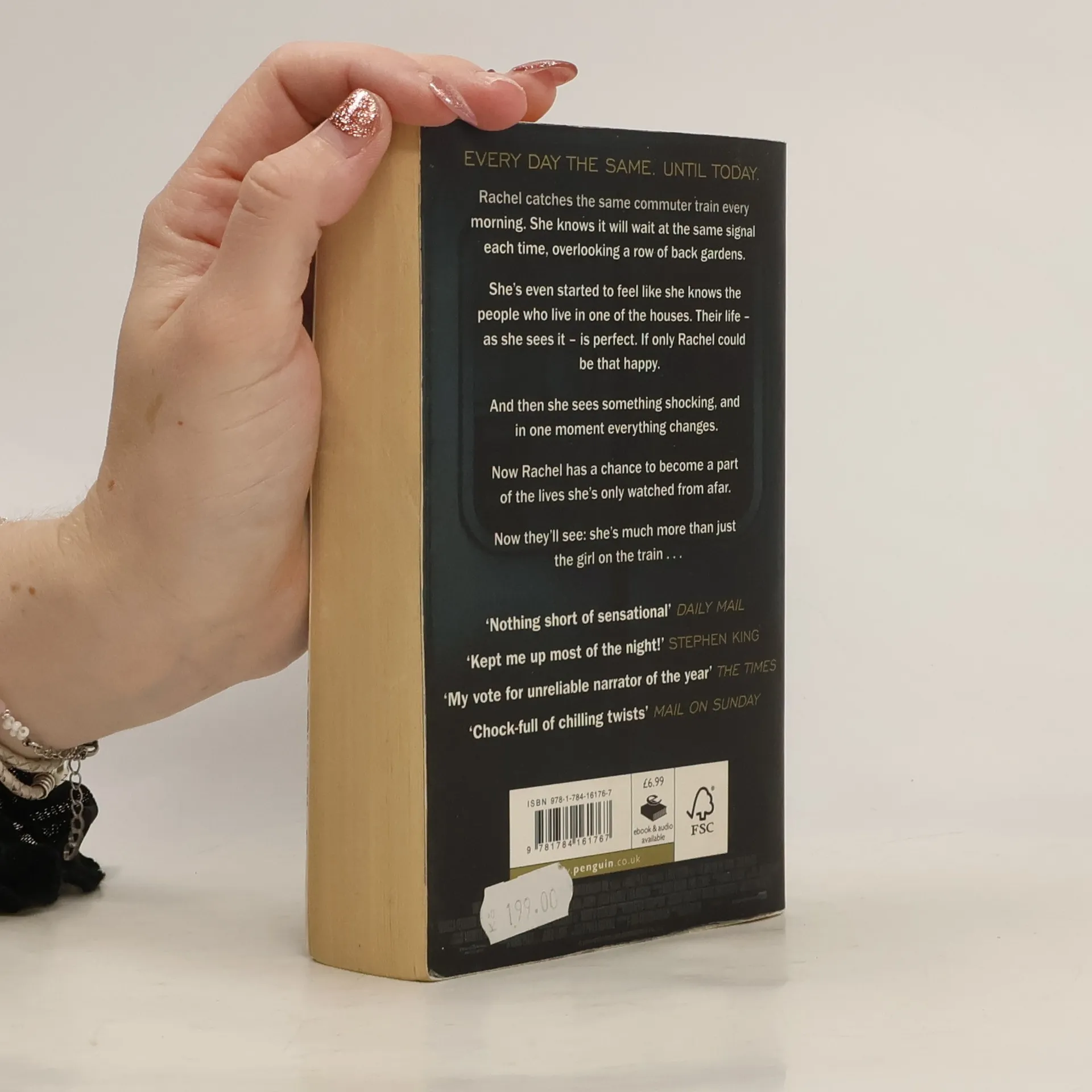 THE RUNAWAY SUNDAY TIMES NO.1 BESTSELLER AND THRILLER OF THE YEAR, NOW A MAJOR FILM STARRING EMILY BLUNT 'Really great suspense novel. Kept me up most of the night. The alcoholic narrator is dead perfect' STEPHEN KING Rachel catches the same commuter train every morning. She knows it will wait at the same signal each time, overlooking a row of back gardens. She's even started to feel like she knows the people who live in one of the houses. 'Jess and Jason', she calls them. Their life - as she sees it - is perfect. If only Rachel could be that happy. And then she sees something shocking. It's only a minute until the train moves on, but it's enough. Now everything's changed. Now Rachel has a chance to become a part of the lives she's only watched from afar. Now they'll see; she's much more than just the girl on the train...