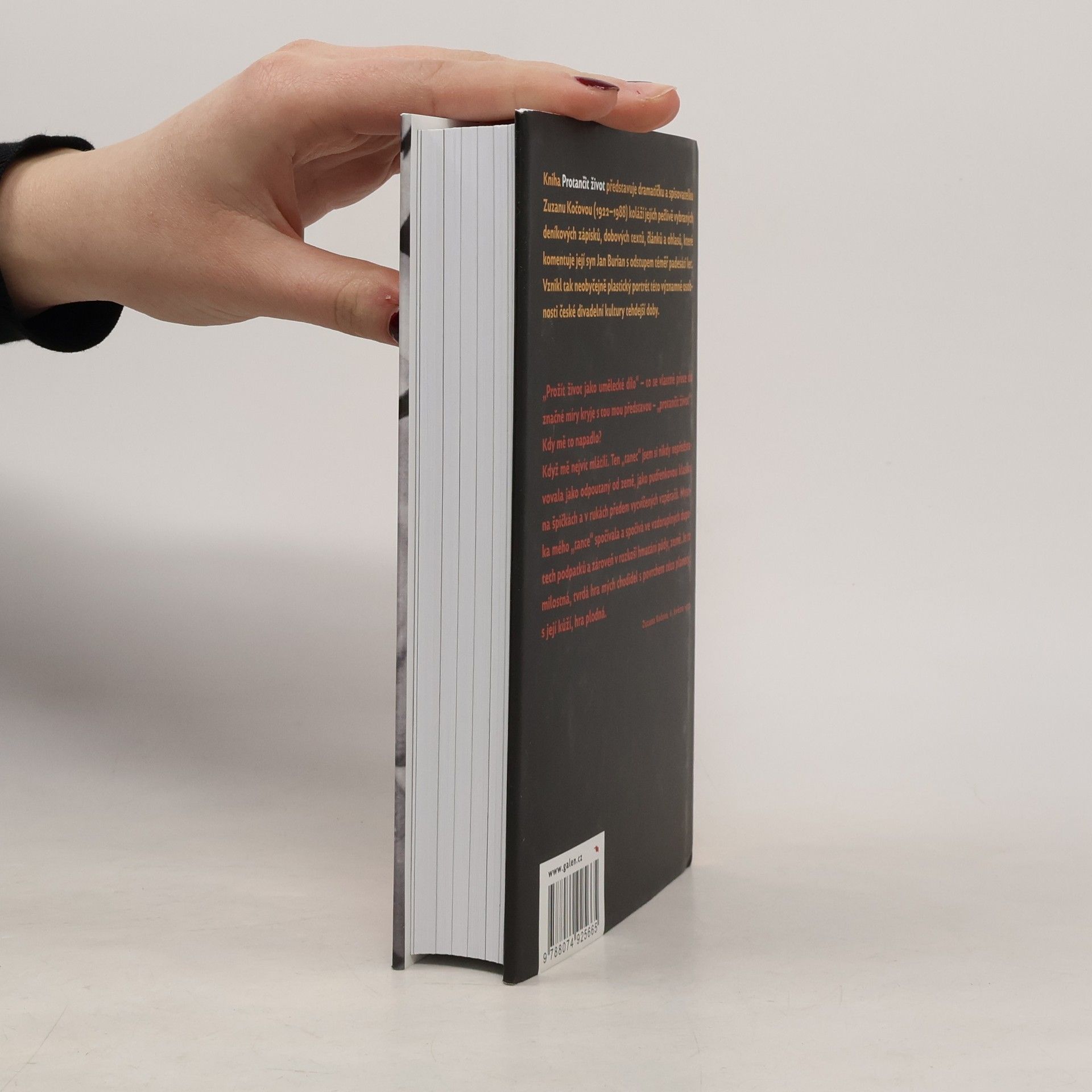 Kniha Protančit život představuje dramatičku a spisovatelku Zuzanu Kočovou (1922-1988) koláží jejích pečlivě vybraných deníkových zápisků, dobových textů, článků a ohlasů, které komentuje její syn Jan Burian s odstupem téměř padesáti let. Vznikl tak neobyčejně plastický portrét této významné osobnosti české divadelní kultury tehdejší doby. „Prožít život jako umělecké dílo“ - to se vlastně přece do značné míry kryje s tou mou představou - „protančit život“! Kdy mě to napadlo? Když mě nejvíc mlátili. Ten „tanec“ jsem si nikdy nepředstavovala jako odpoutaný od země, jako pudřenkovou klasiku na špičkách a v rukách předem vycvičených vzpěračů. Mystika mého „tance“ spočívala a spočívá ve vzdoruplných dupotech podpatků a zároveň v rozkoši hmatání půdy, země. Je to milostná, tvrdá hra mých chodidel s povrchem této planety, s její kůží, hra plodná. Zuzana Kočová, 6. května 1977
