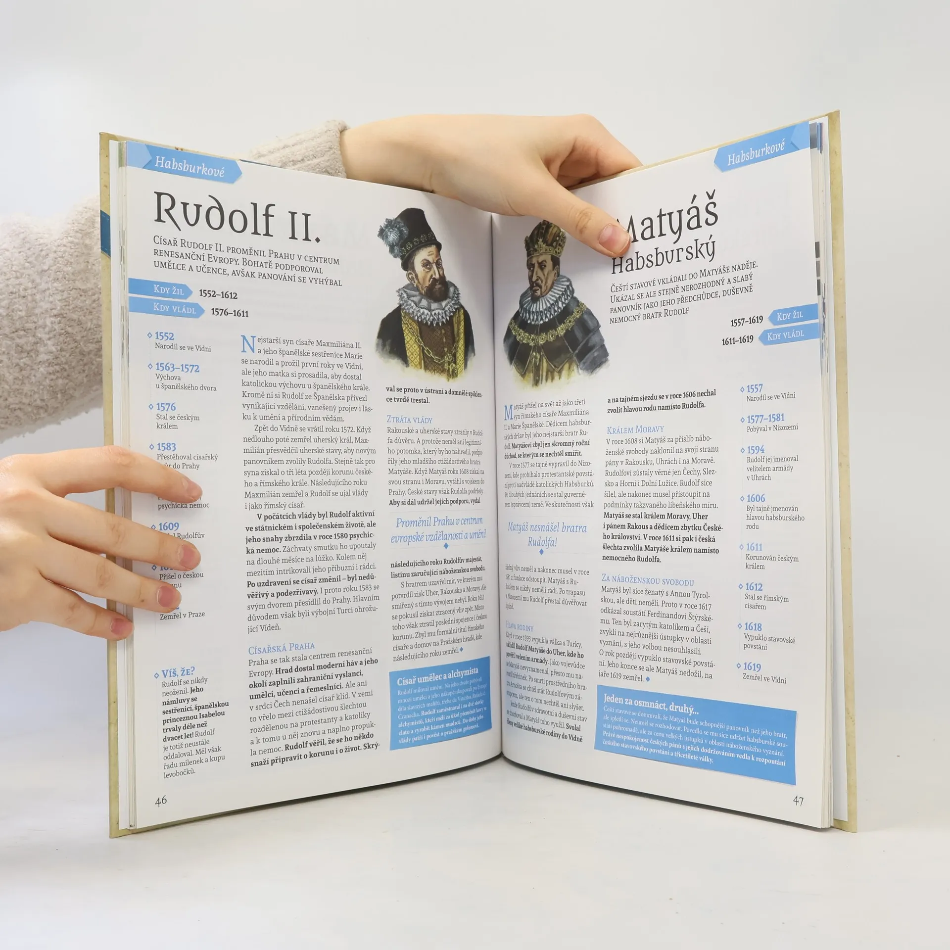 Encyklopedie je určena především dětem a mládeži a představuje poutavou formou všechna knížata, krále i prezidenty - od Sámovy říše po samostatnou Českou republiku. Unikátní portréty od malíře Jana Hory doplňují nejen samotné texty, ale i časové osy či infoboxy se zajímavostmi dané doby. Součástí knihy je i velký plakát panovníků a vládnoucích rodů.