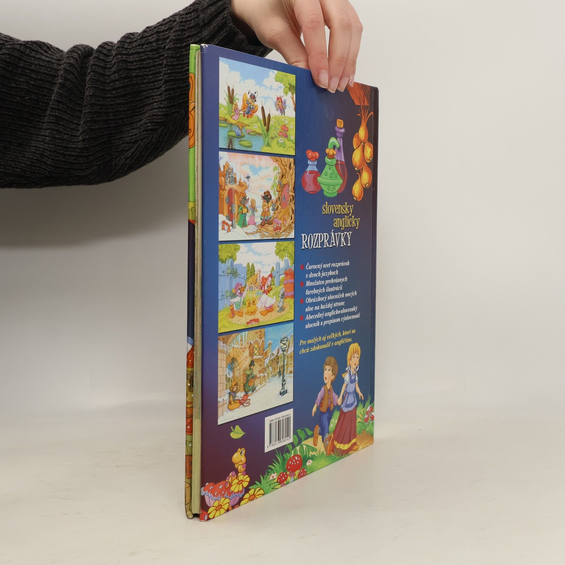 Čarovný svet rozprávok v dvoch jazykoch. Pre malých aj veľkých, ktorí sa chců zdokonaliť v angličtine. Rozprávka je na jednej strane v slovenčine a na druhej strane v angličtine. Kniha je vo výbornom stave. Rozprávky: Snehová kráľovná, Malá morská víla, O Jankovi a Marienke, Palculienka, O škaredom káčatku, O Červenej čiapočke, Muzikanti z Brém, Malá predavačka zápaliek.