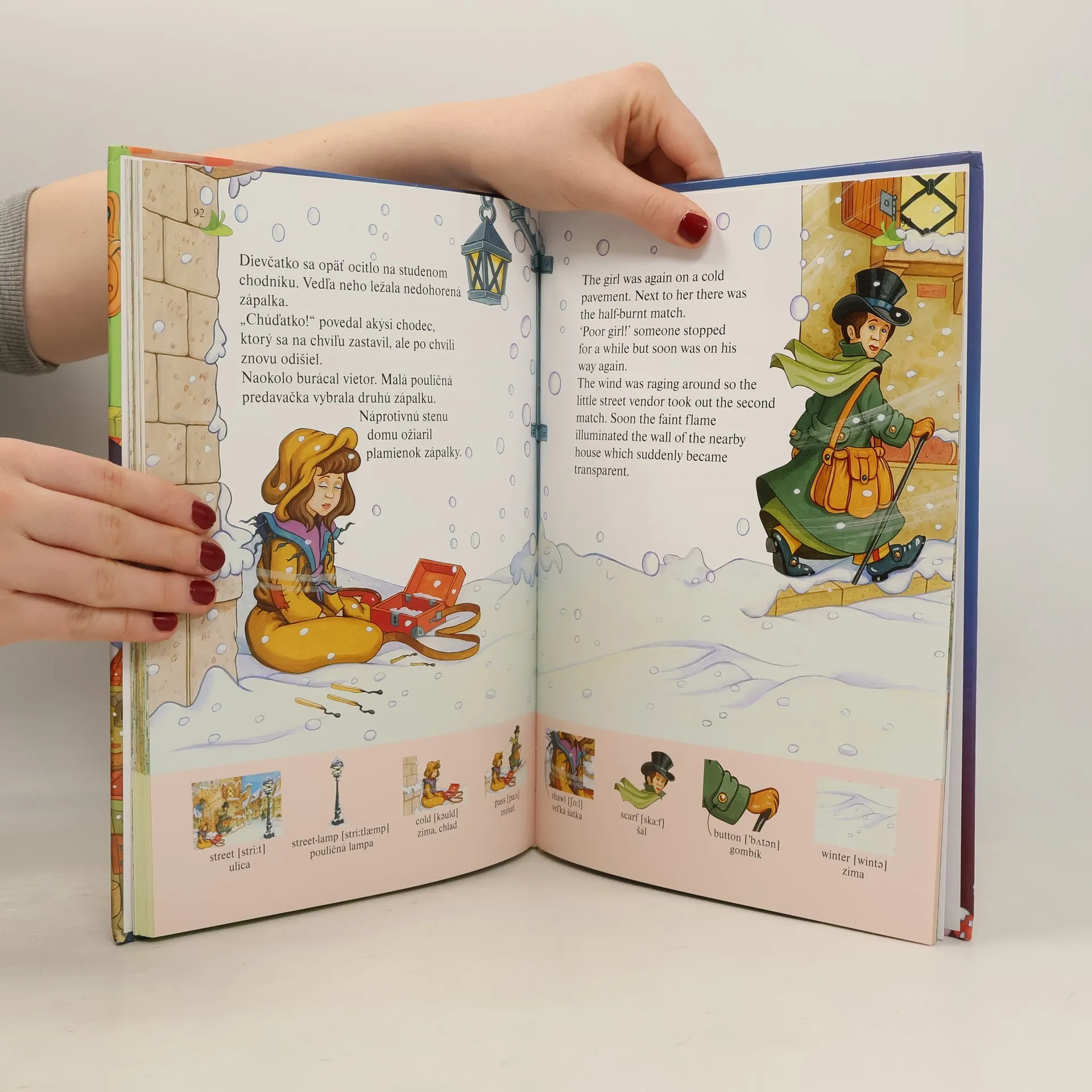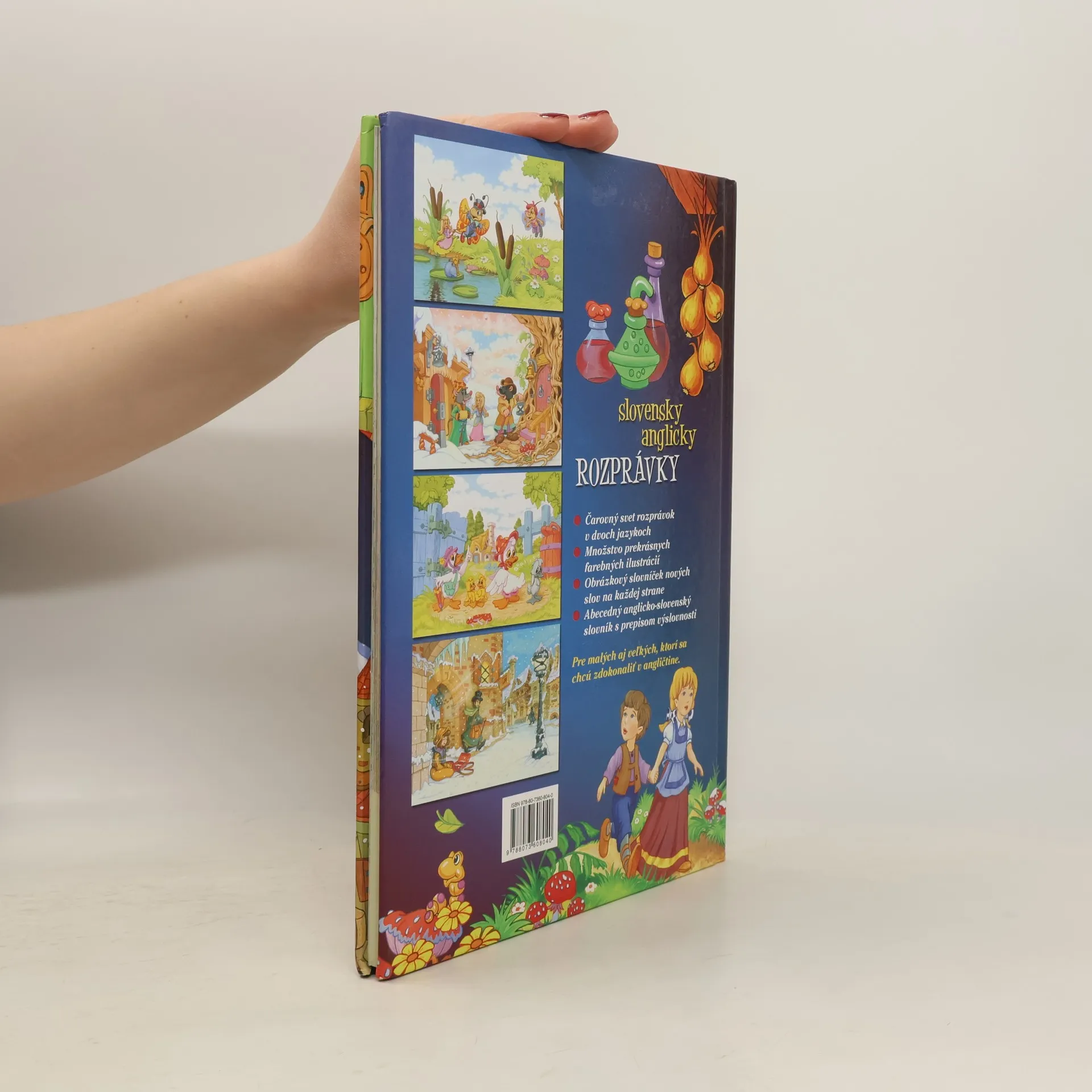 Čarovný svet rozprávok v dvoch jazykoch. Pre malých aj veľkých, ktorí sa chců zdokonaliť v angličtine. Rozprávka je na jednej strane v slovenčine a na druhej strane v angličtine. Kniha je vo výbornom stave. Rozprávky: Snehová kráľovná, Malá morská víla, O Jankovi a Marienke, Palculienka, O škaredom káčatku, O Červenej čiapočke, Muzikanti z Brém, Malá predavačka zápaliek.