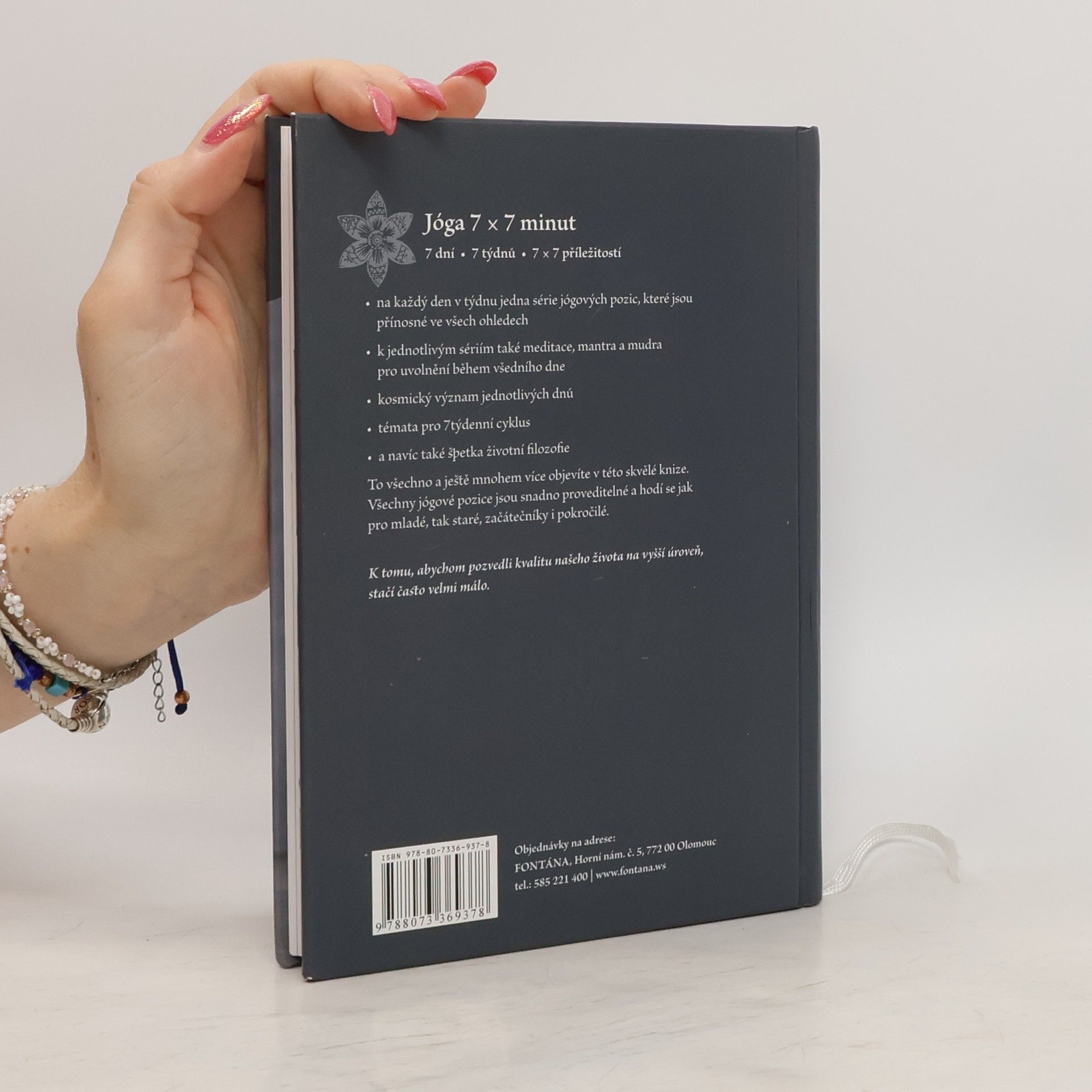 Jóga 7 × 7 minut. 7 dní, 7 týdnů, 7 × 7 příležitostí. • na každý den v týdnu jedna série jógových pozic, které jsou přínosné ve všech ohledech • k jednotlivým sériím také meditace, mantra a mudra pro uvolnění během všedního dne • kosmický význam jednotlivých dnů • témata pro 7týdenní cyklus • a navíc také špetka životní filozofie To všechno a ještě mnohem více objevíte v této skvělé knize. Všechny jógové pozice jsou snadno proveditelné a hodí se jak pro mladé, tak staré, začátečníky i pokročilé. K tomu, abychom pozvedli kvalitu našeho života na vyšší úroveň, stačí často velmi málo. Velkých změn v životě dosáhneme malými krůčky… a přesně k tomu slouží i tato kniha autorky Gertrud Hirschi. Na každý den v týdnu nabízí sedmiminutové cvičení, meditaci, afirmaci a mudru vycházející z jógy, avšak představené běžným a srozumitelným jazykem. Doporučené denní sestavy jsou založené na energetickém nastavení jednotlivých dnů podle planet, které jsou jim tradičně připisovány v západní astrologii. Účinně procvičí celé tělo a osvěží ducha. Na závěr autorka nabízí sedm témat, na něž se můžeme zaměřit po celý týden. Kniha je výborným návodem pro zájemce všeho věku, kteří chtějí získat sílu, jasnost a životní pohodu.