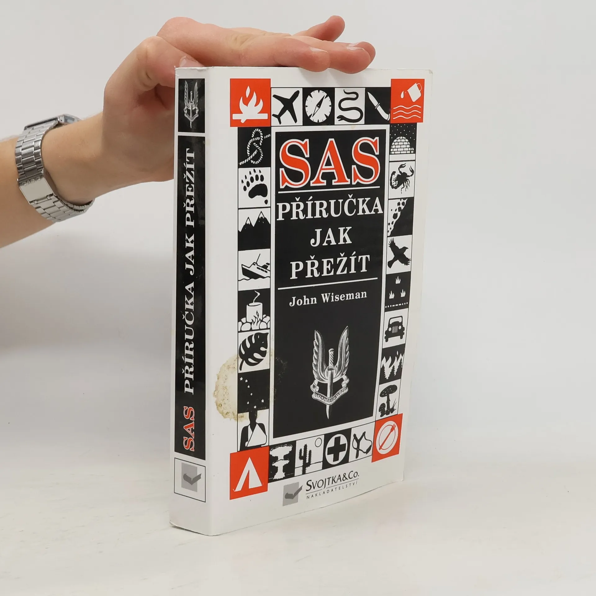 Tato publikace vám umožní zvládnout jakoukoli situaci tak jako speciálně vycvičení vojáci jednotek SAS. Obsahuje rady z oblastí: strategie, tábornictví, výkladu map, první pomoci, předpovědi počasí, přežití na moři či při pochodu v horách a džungli. Dozvíte se nejdůležitější informace o správné výstroji, podnebných pásmech, jedlých rostlinách, zvířatech, která lze ulovit, rozdělání ohně a přípravě jídel, nebezpečných rybách, ale i o signálech a kódech či pátracích postupech. S touto knihou prostě přežijete!!!