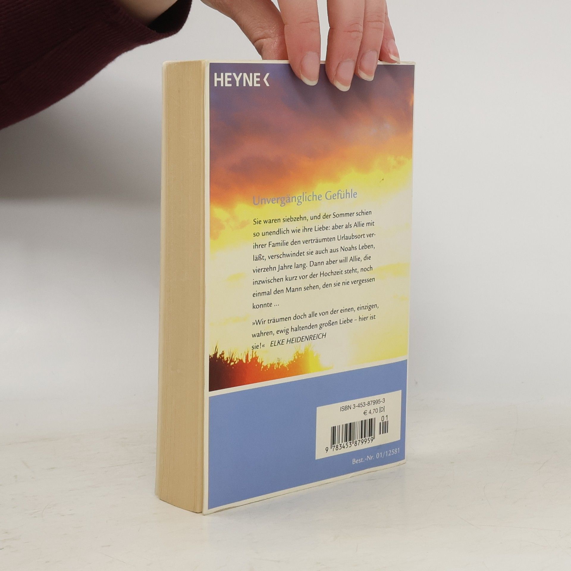 Sie sind siebzehn und verlieben sich auf den ersten Blick ineinander. Einen wunderschönen, scheinbar endlosen Sommer haben Allie und Noah gemeinsam. Dann muss Allie mit ihrer Familie den verträumten Urlaubsort verlassen - und verschwindet aus Noahs Leben. Vierzehn Jahre lang hört er nichts mehr von ihr. Und obwohl er sie verloren geben muss, kann er sich doch nie mehr neu binden. Bis Ally eines Tages plötzlich wieder vor ihm steht: Sie ist mit einem erfolgreichen Anwalt verlobt, aber bevor es zur Hochzeit kommt, will sie noch einmal den Mann sehen, den sie nie vergessen konnte ...