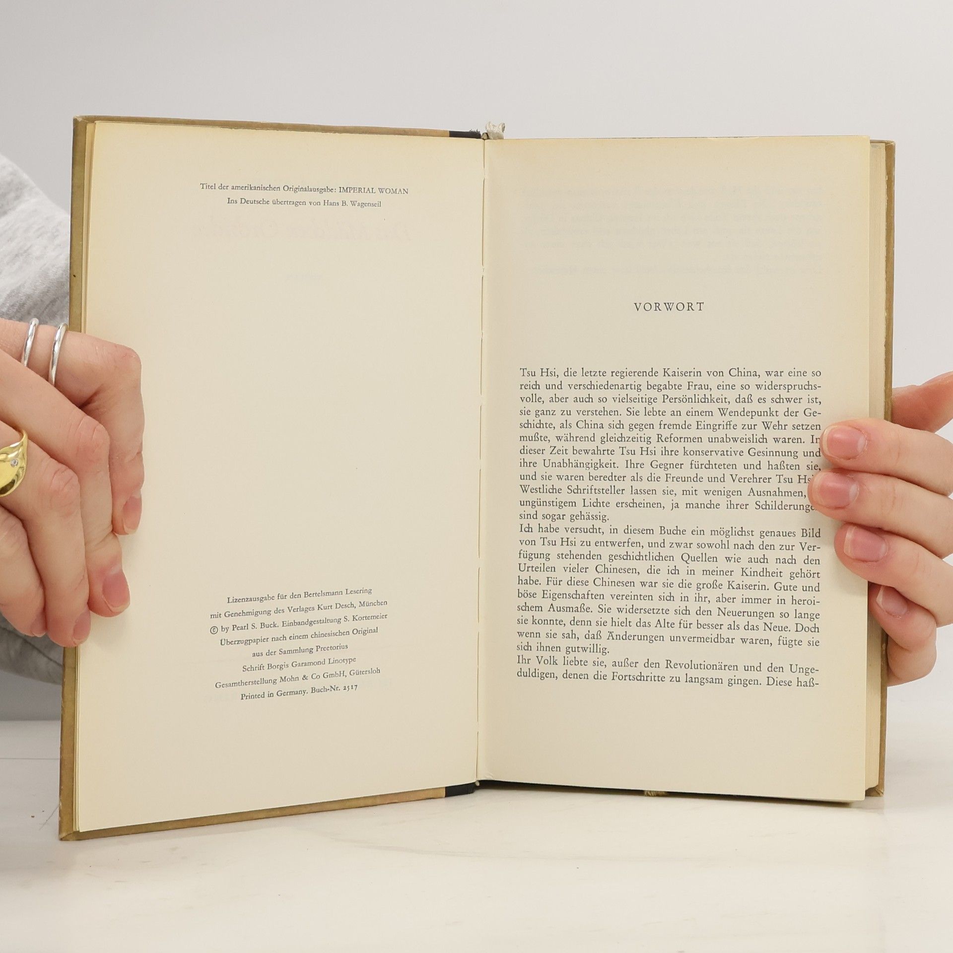 Sie ist die einzige Frau in der Verbotenen Stadt, die es wagt, dem Kaiser direkt in die Augen zu schauen. Und sie ist es, die ihm schließlich den ersehnten Thronfolger schenkt. Mit Klugheit und Tatkraft gelingt es dem einfachen Bürgermädchen Tsu Hsi, von der kaiserlichen Konkubine zur Herrscherin über ein Weltreich emporzusteigen. Um den Preis ihrer einzigen und ersten Liebe, der Liebe zu ihrem Vetter Jung Lu … Die Nobelpreisträgerin Pearl S. Buck hat aus dem Leben der Kaiserin Tsu Hsi ein atemberaubendes Panorama des alten China geschaffen.