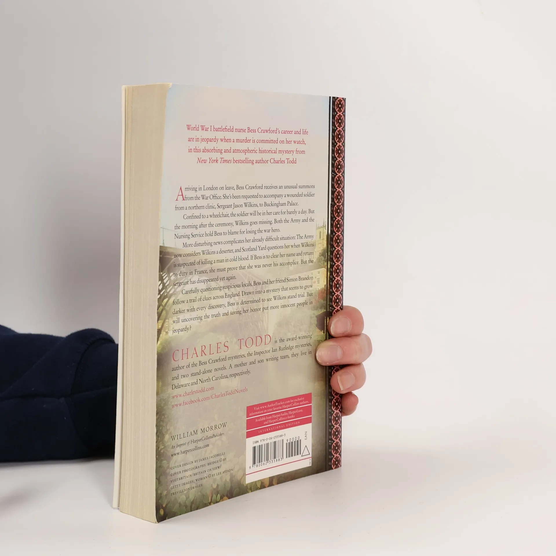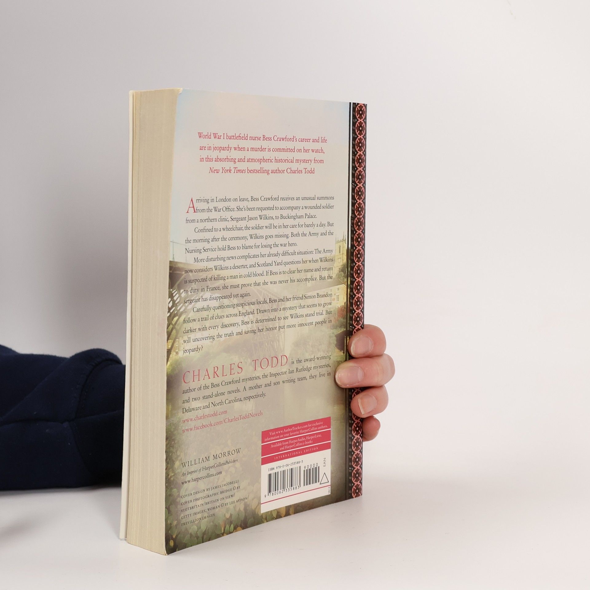 World War I battlefield nurse Bess Crawford's career and life are in jeopardy when a murder is committed on her watch. Arriving in London on leave, Bess Crawford receives an unusual summons from the War Office. She's to accompany a wounded soldier from a northern clinic, Sergeant Jason Wilkins, to Buckingham Palace. Confined to a wheelchair, the soldier will be in her care for barely a day. But the morning after the ceremony, Wilkins is missing. Bess is blamed for losing the war hero. More disturbing news complicates her difficult situation! The Army considers Wilkins a deserter, and Scotland Yard questions her when Wilkins is suspected of killing a man. If Bess is to clear her name, she must prove that she was never his accomplice. But the sergeant has disappeared yet again. Carefully questioning unhelpful villagers, Bess and her friend, Simon, follow a trail of clues across England. But will uncovering the truth and saving her honor put more innocent people in jeopardy?